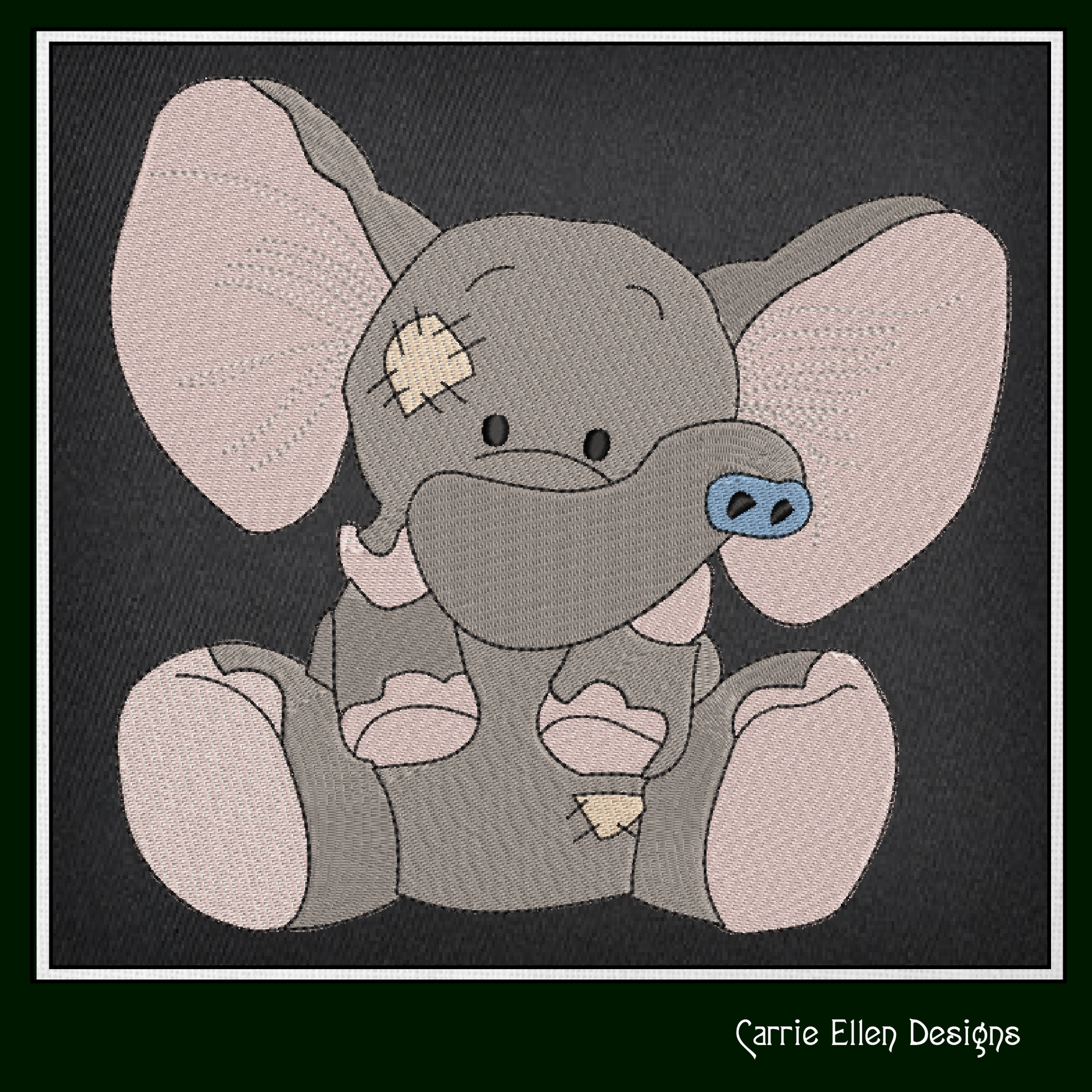 Toy Elephant Machine Embroidery Design for Babies and Kids | Vintage Stuffed Animal Pattern | Blue Nose Tatty Teddy Inspired Embroidery | 6 Sizes (0769)