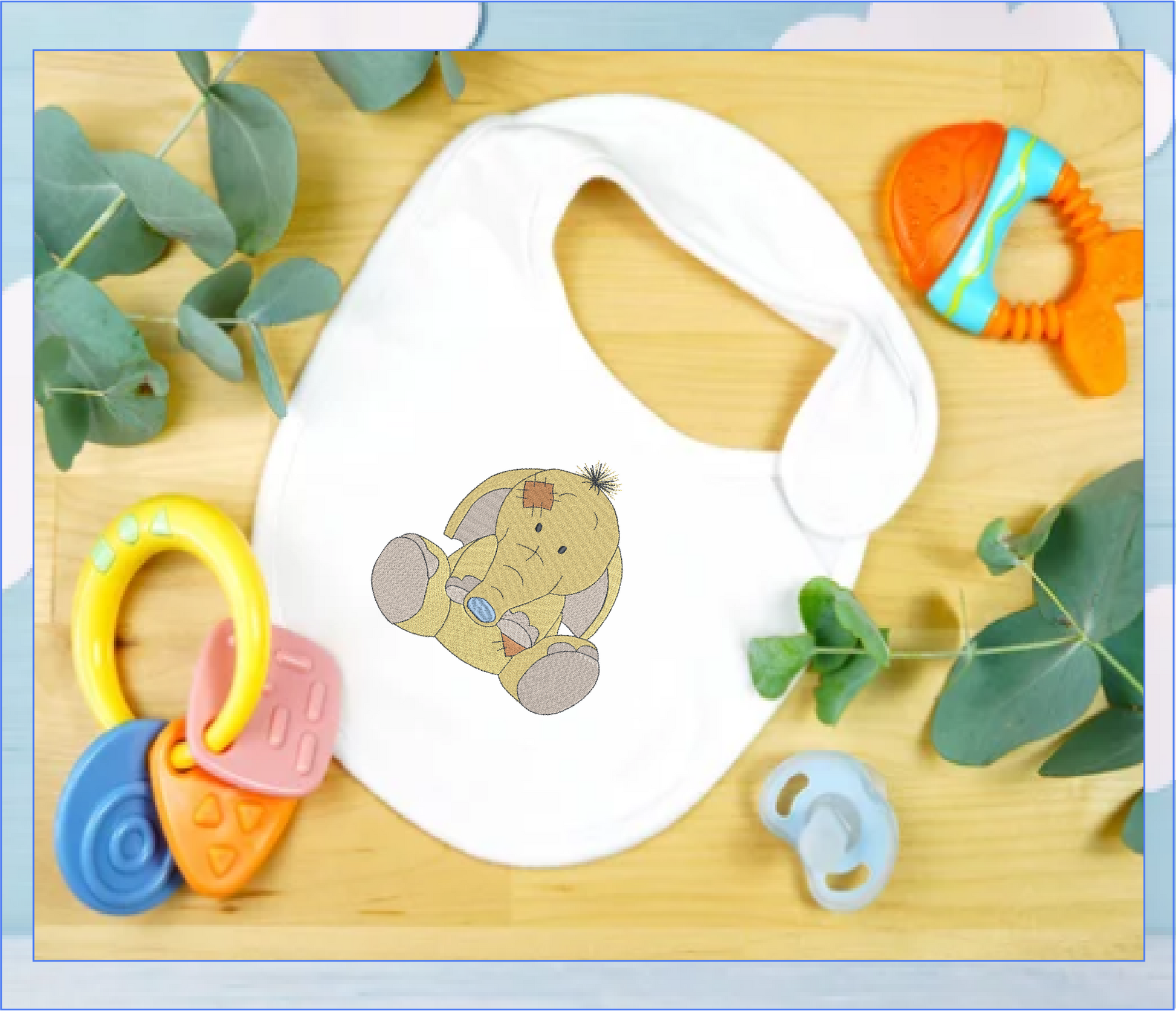 Stitch pure nostalgia with our Toy Elephant Machine Embroidery Design for Babies and Kids, inspired by the timeless Blue Nose Tatty Teddy series! This charming vintage-style stuffed elephant features soft stitched lines, a signature blue nose, and a cuddly worn look, making it perfect for all your heartfelt baby and children's projects.