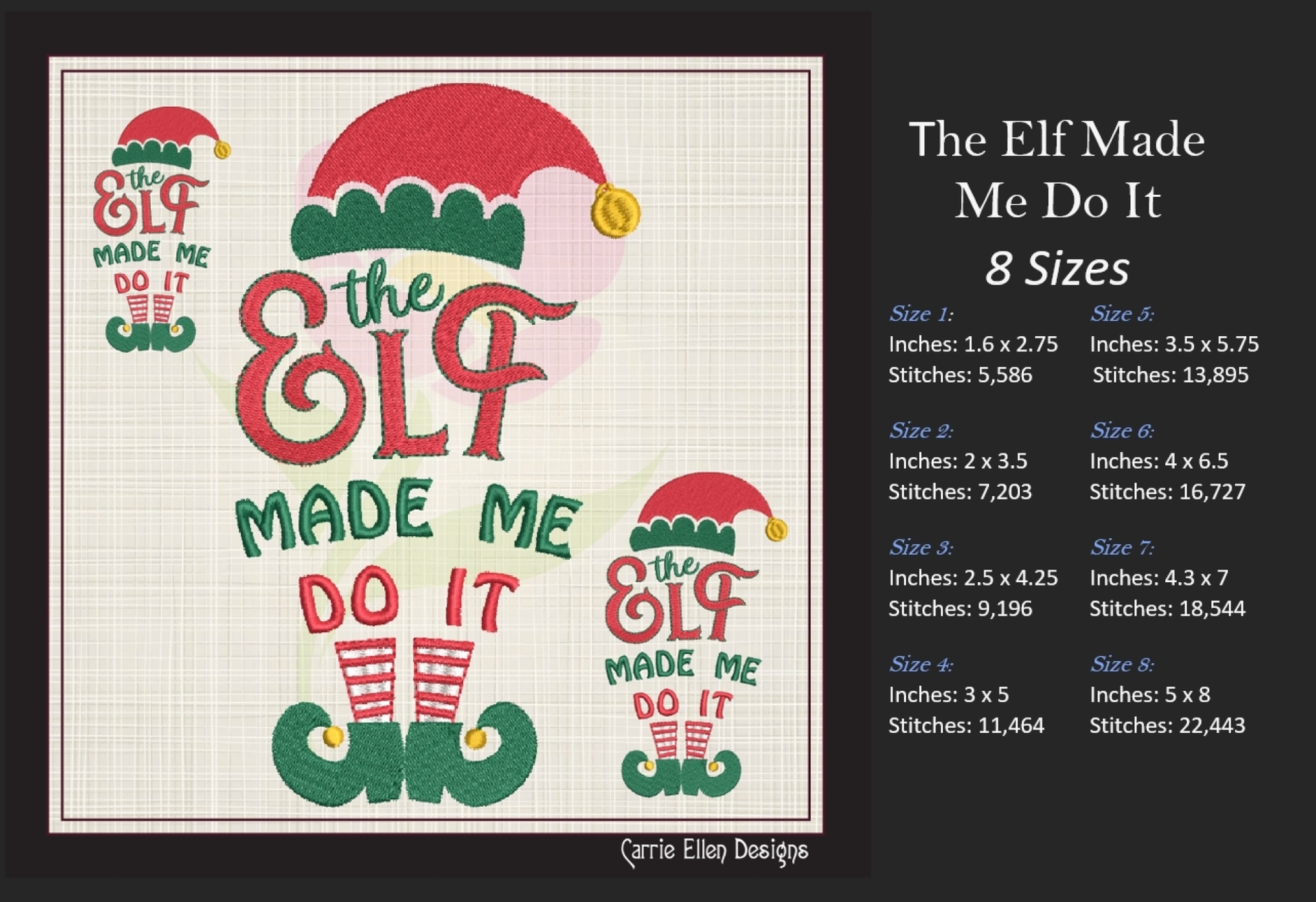 The Elf Made Me Do It Christmas Machine Embroidery Design – Funny Holiday Saying, 8 Sizes (1058)