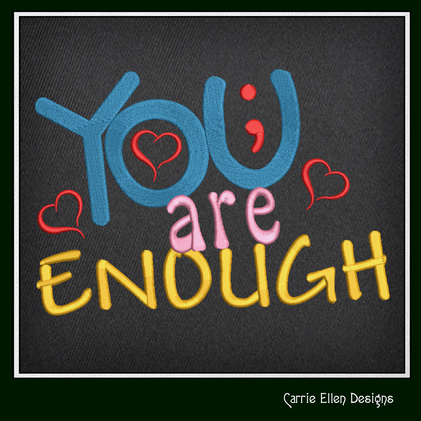 You Are Enough Machine Embroidery Design | Inspirational Quote for Positive Mindset | Woke Saying for Apparel, Gifts & Decor | 6 Sizes (1751)