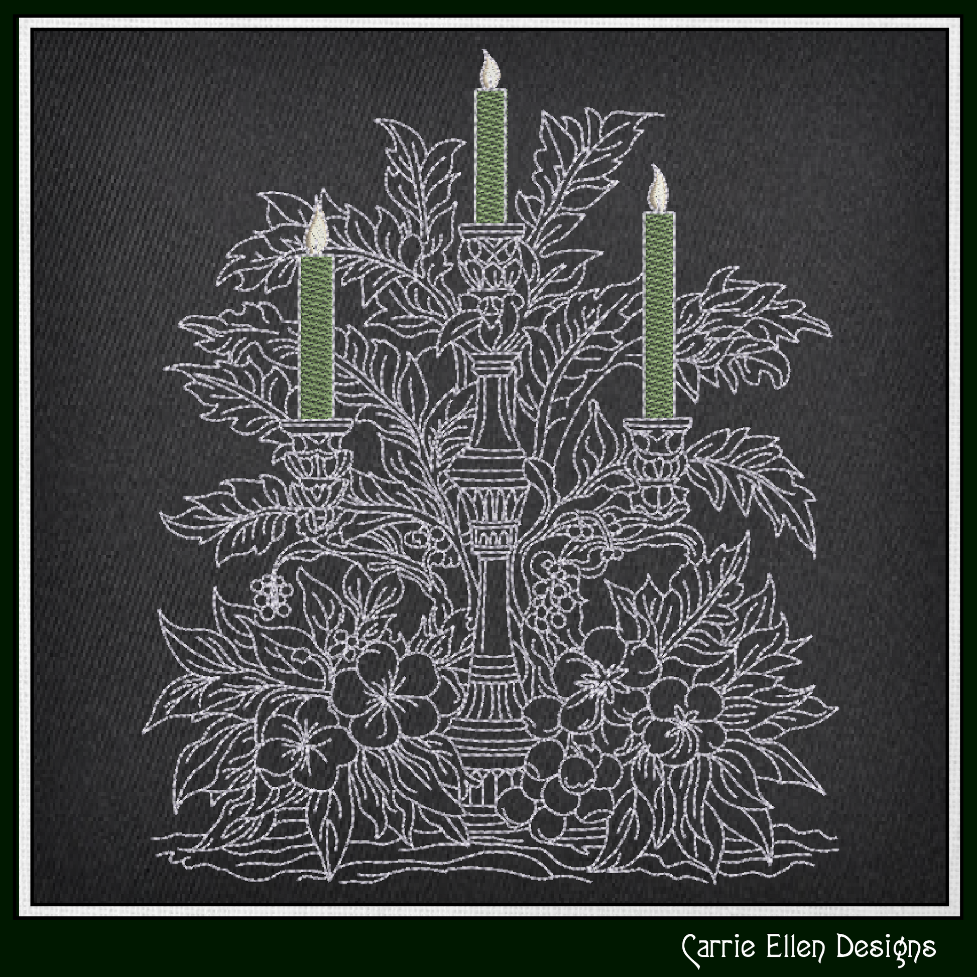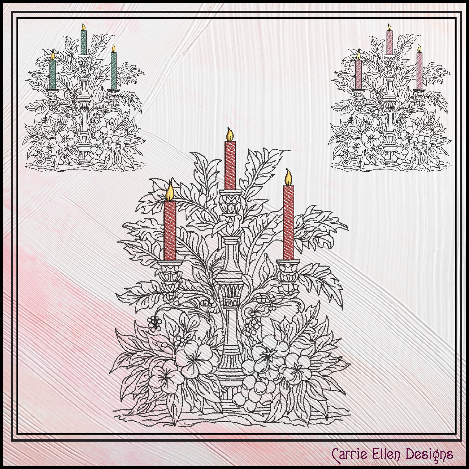 Elegant Floral Candle Centerpiece Machine Embroidery Design, Artistic Candelabra Sketch, Holiday Design, 6 Sizes (3025)
