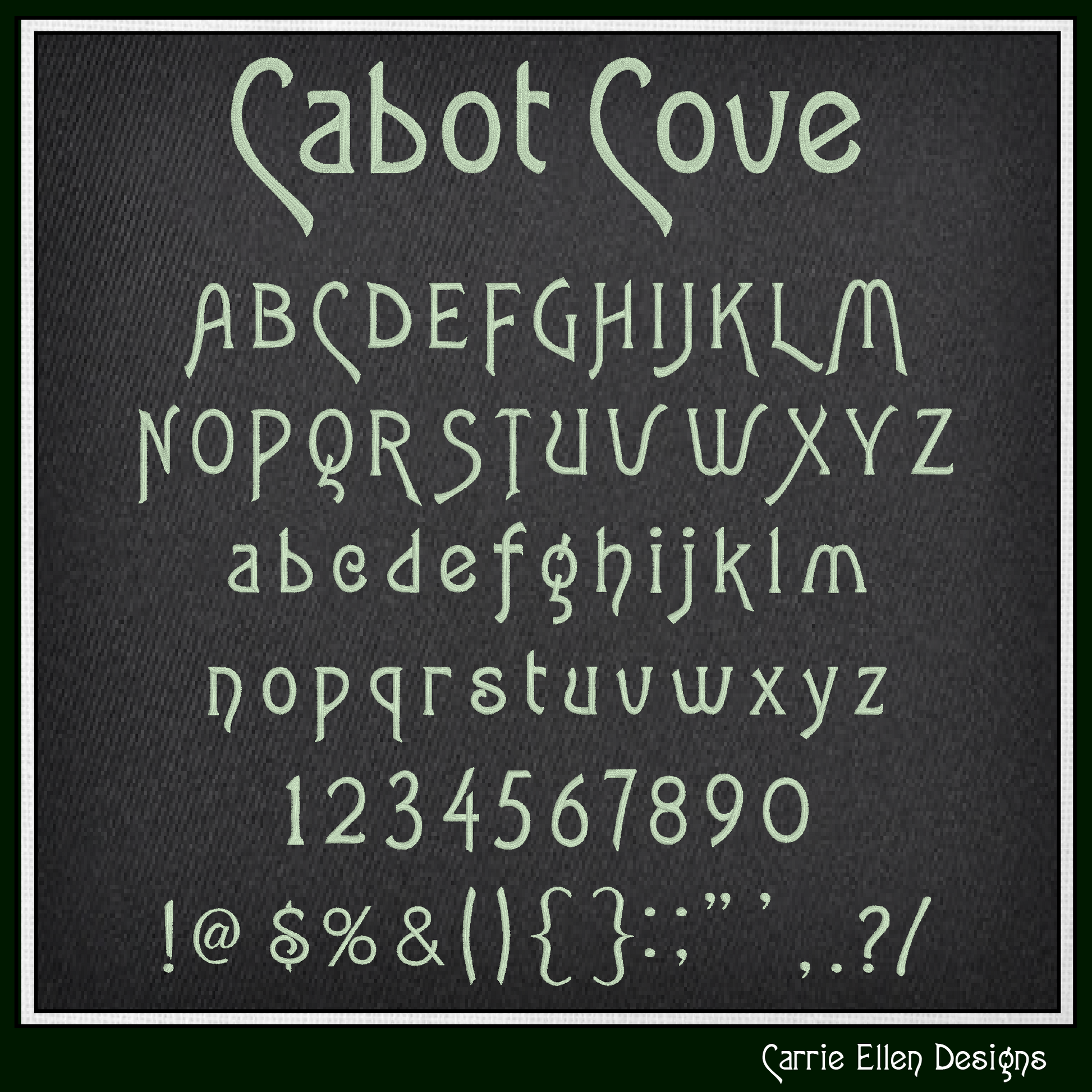 Digitized as a native BX font for Embrilliance, Cabot Cove allows you to type lettering directly into your software just like a keyboard font — making personalization fast, easy, and professional.