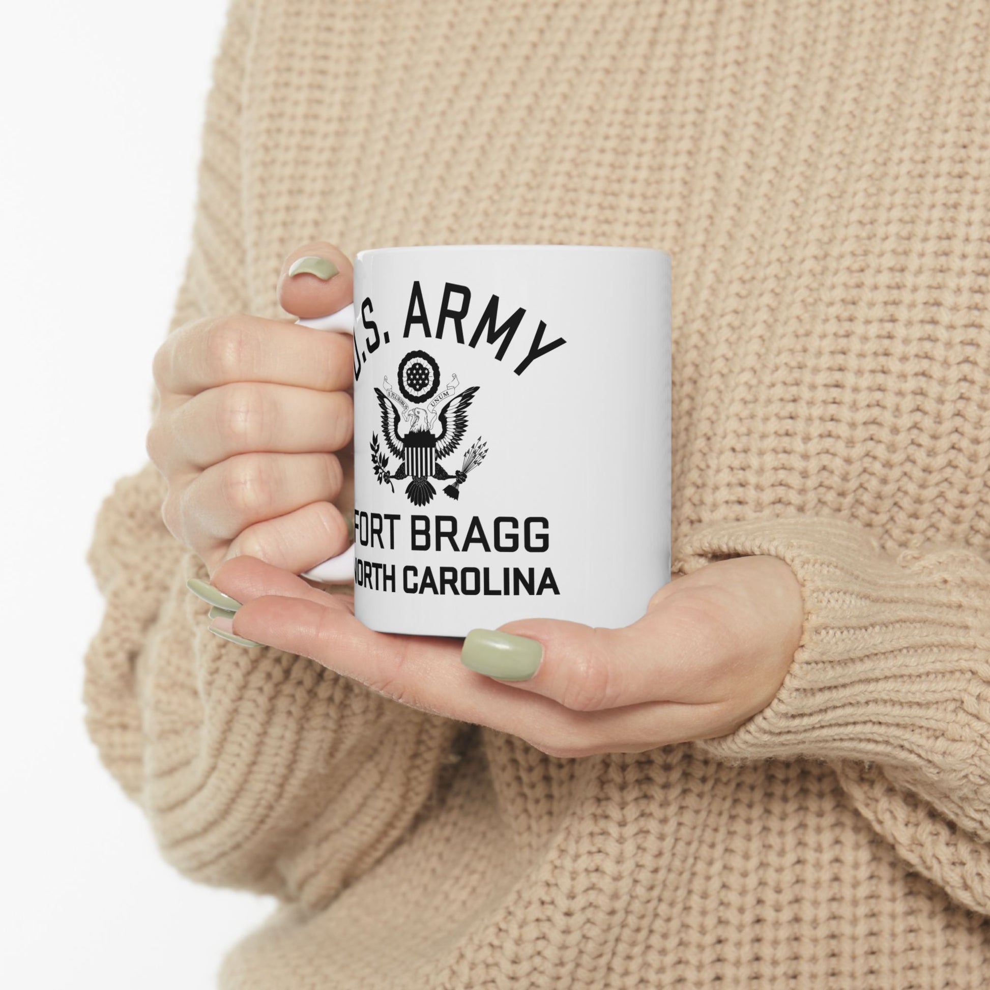 Show your pride in military history with this US Army Fort Bragg Eagle Emblem Ceramic Mug, a tribute to one of America's most iconic military bases. Featuring a vintage WWII reproduction eagle design, this mug brings heritage and honor to your daily routine.