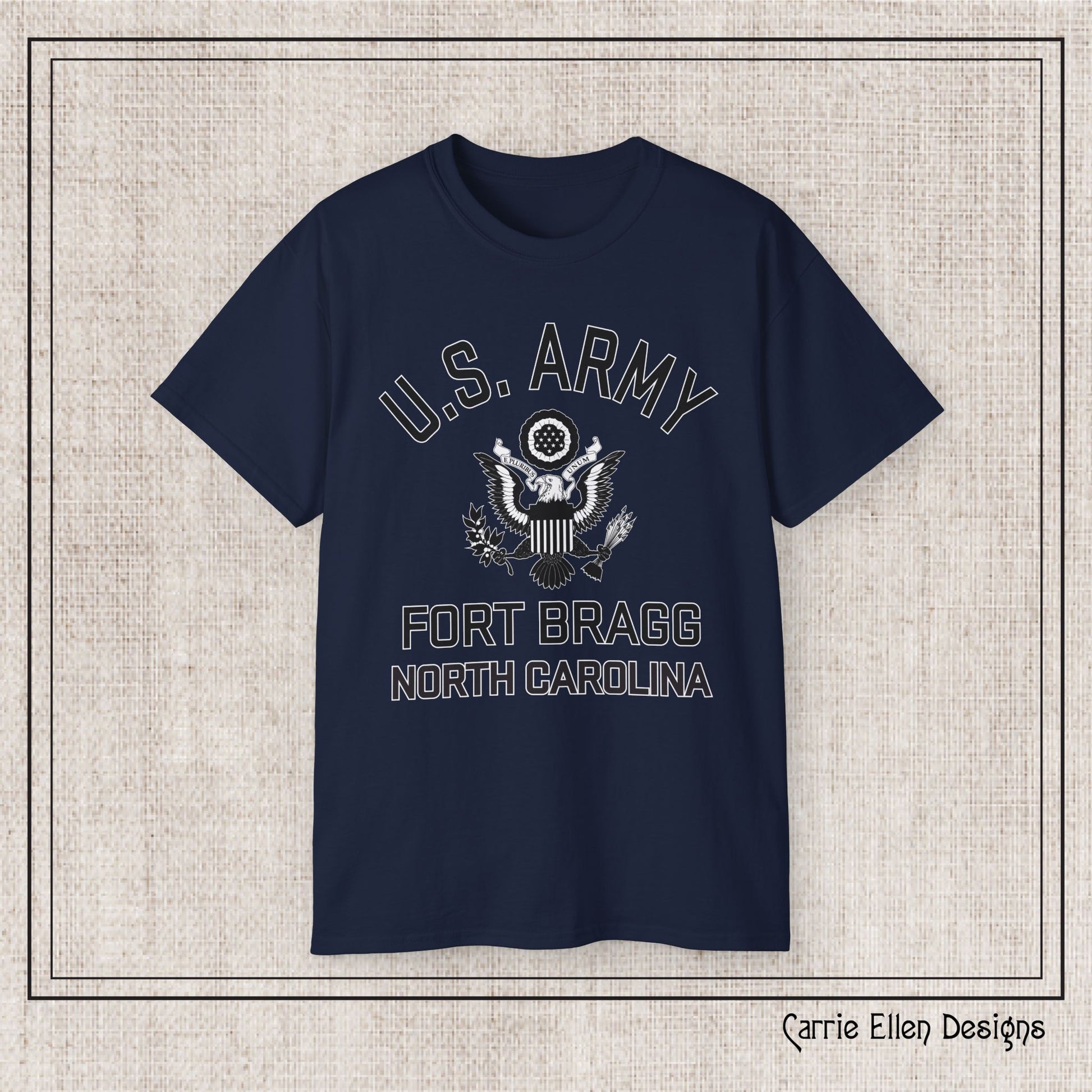 Celebrate military history with this US Army Fort Bragg Eagle Emblem T-Shirt, a faithful reproduction of a vintage World War II U.S. Army design. Featuring the iconic eagle emblem tied to Fort Bragg, one of the most storied military bases in American history, this shirt honors the strength, service, and legacy of U.S. Army soldiers past and present.