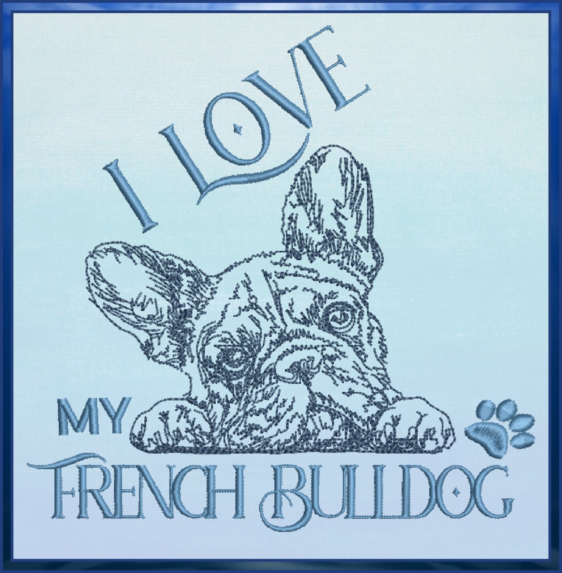 I Love My French Bulldog Sketch Machine Embroidery Design, Dog Embroidery Pattern, Frenchie Embroidery, Pet Animal Embroidery, 8 Sizes (0332)