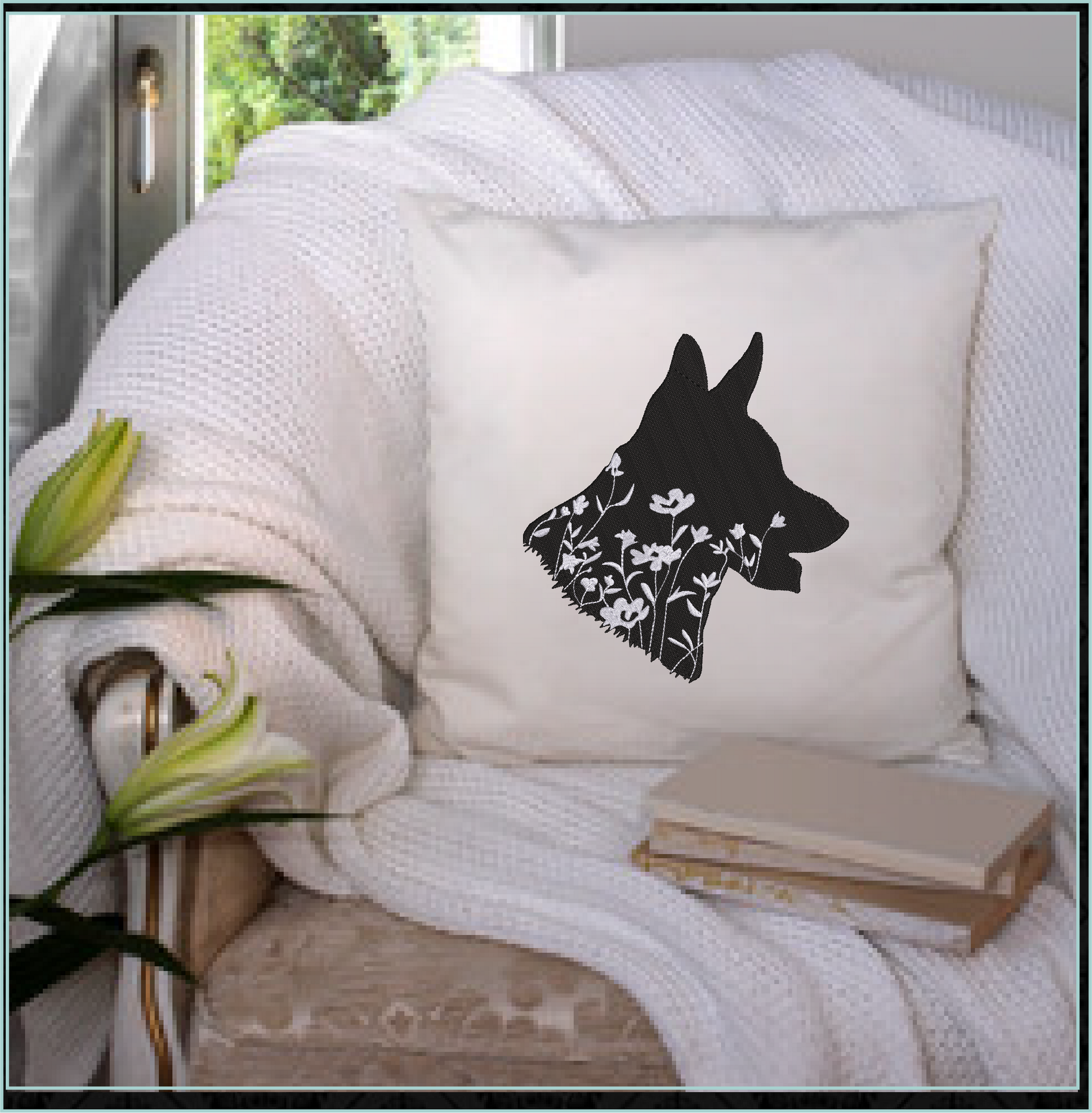 German Shepherd Floral Silhouette Machine Embroidery Design | Dog Silhouette with Wildflowers | German Shepherd Dog Lover Gift | 8 Sizes (0800)