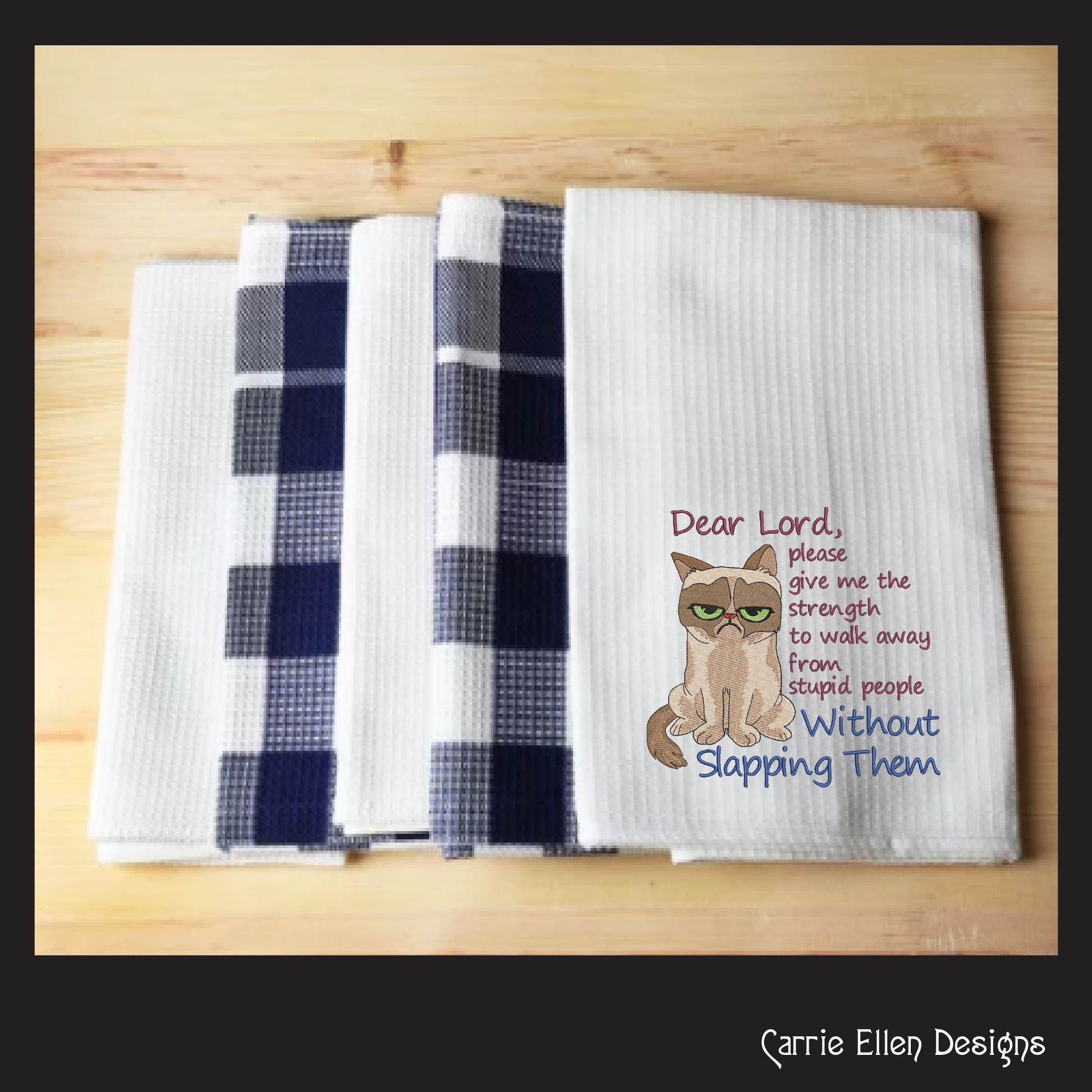 Dear Lord Give Me Strength Machine Embroidery Design | Grumpy Cat Sarcastic Quote | Slapping Stupid People Humor | 6 Sizes (1746)