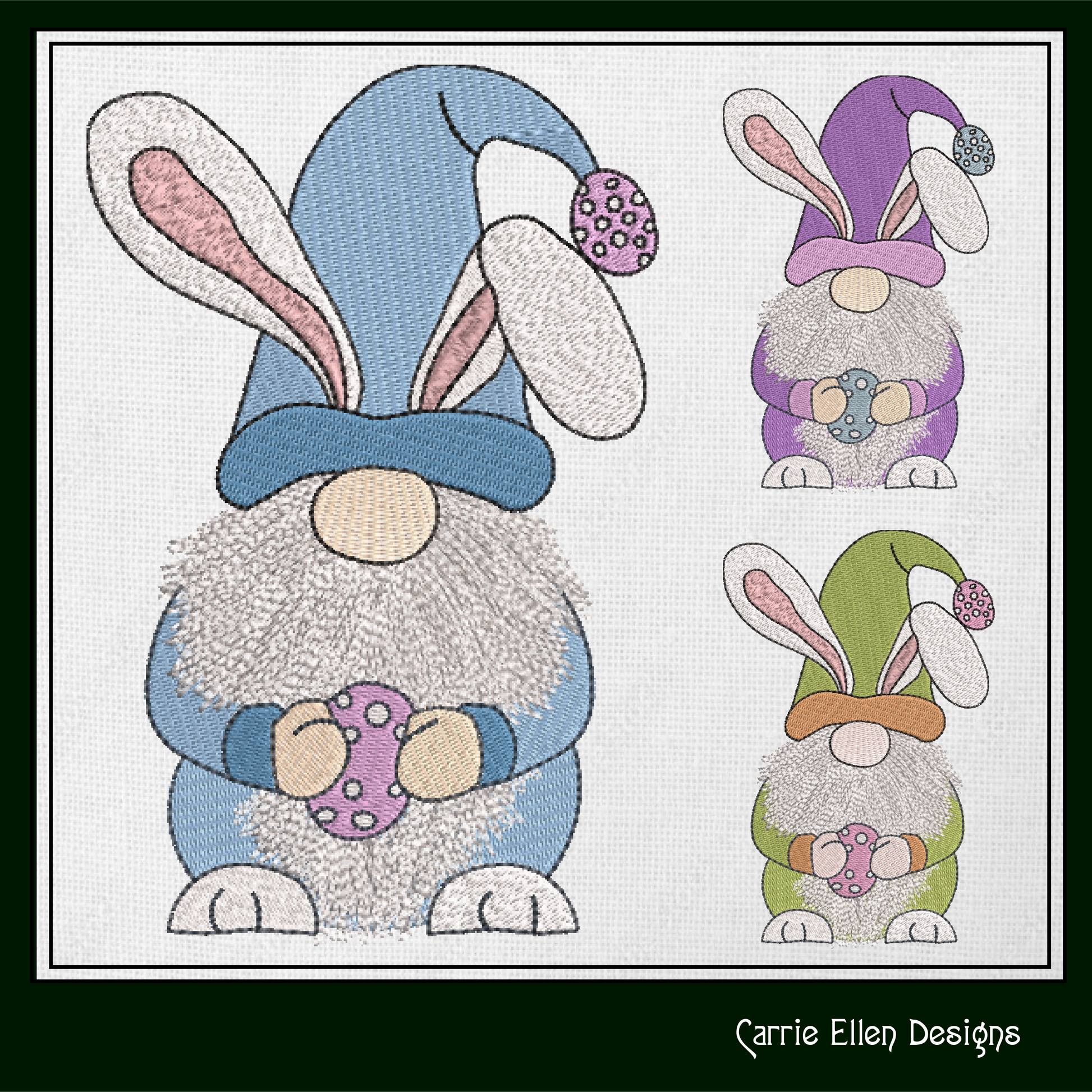 Gnome Easter Bunny Machine Embroidery Design – Holiday Easter Egg Bunny – 6 Sizes (1385)
