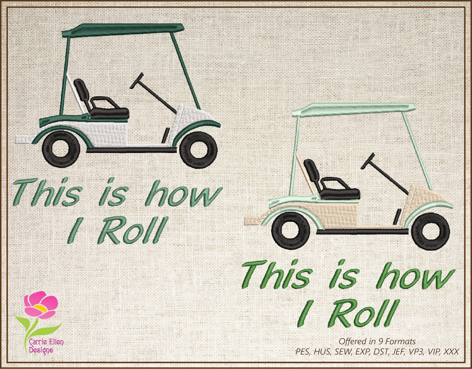 Golf Cart “This is How I Roll” Machine Embroidery Design, Sport Embroidery for Golf Lovers, 6 Sizes (0136)