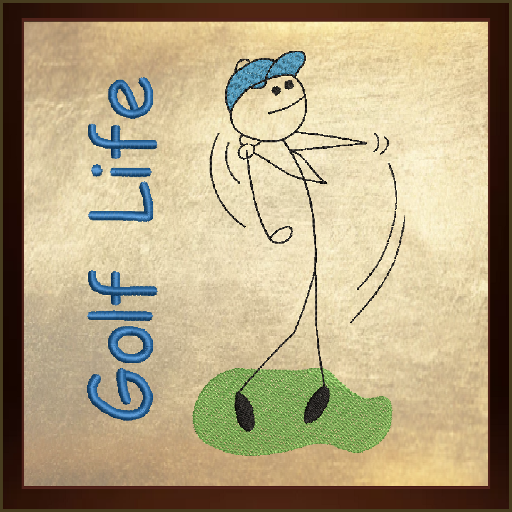 Celebrate the golf lover in your life with this fun and sporty Male Golfer Stick Figure Machine Embroidery Design! Featuring a minimalist stick figure golfer mid-swing, this “Golf Life” inspired design is perfect for embroidering on golf towels, polos, hats, tote bags, and more.