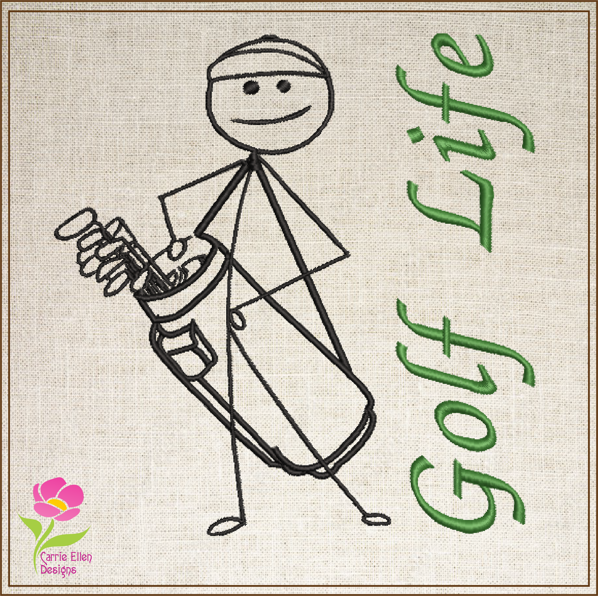 Golf Machine Embroidery Design, Golf Life Caddy Embroidery, Caddy Embroidery, Machine Embroidery Golf Player Embroidery, 8 Sizes (0287)