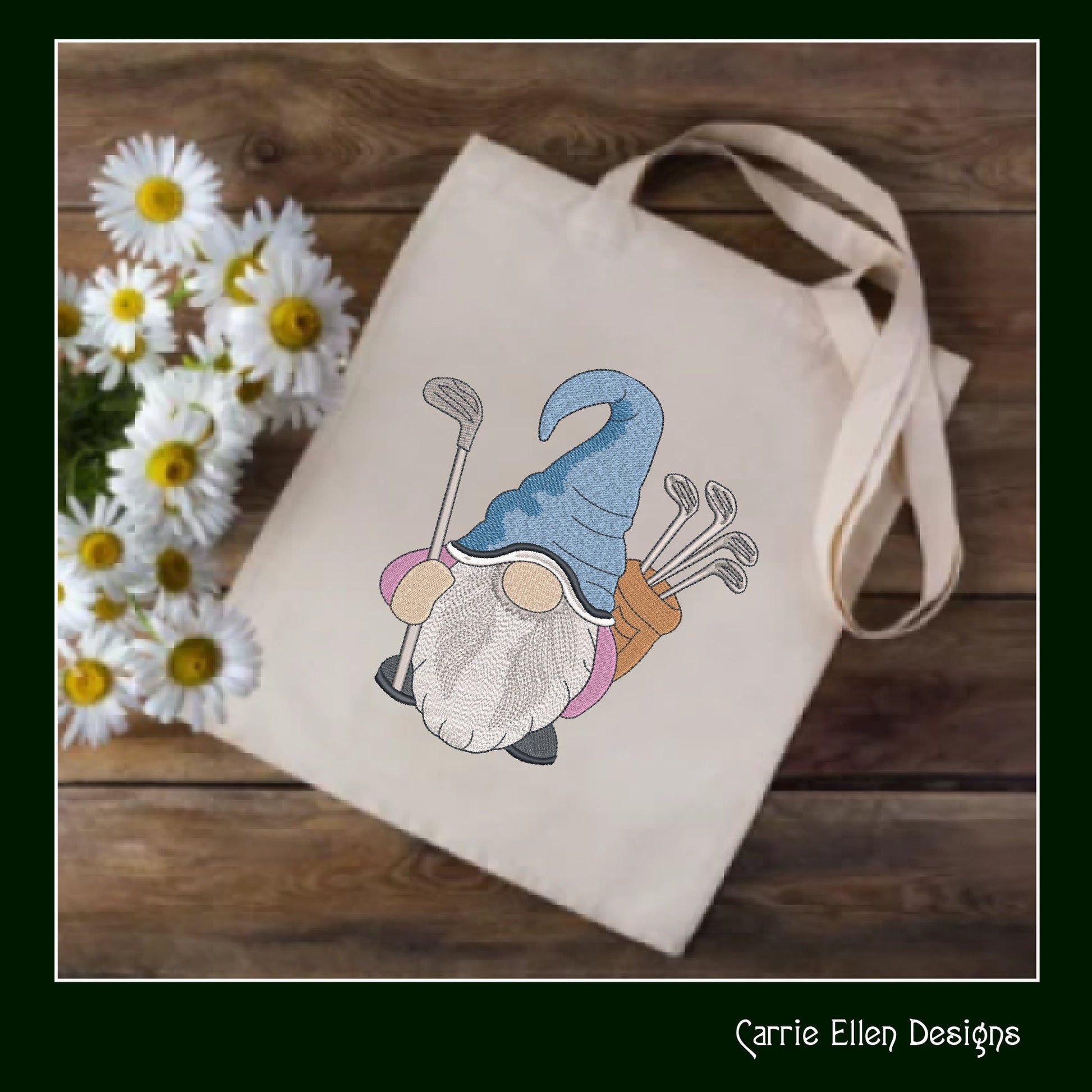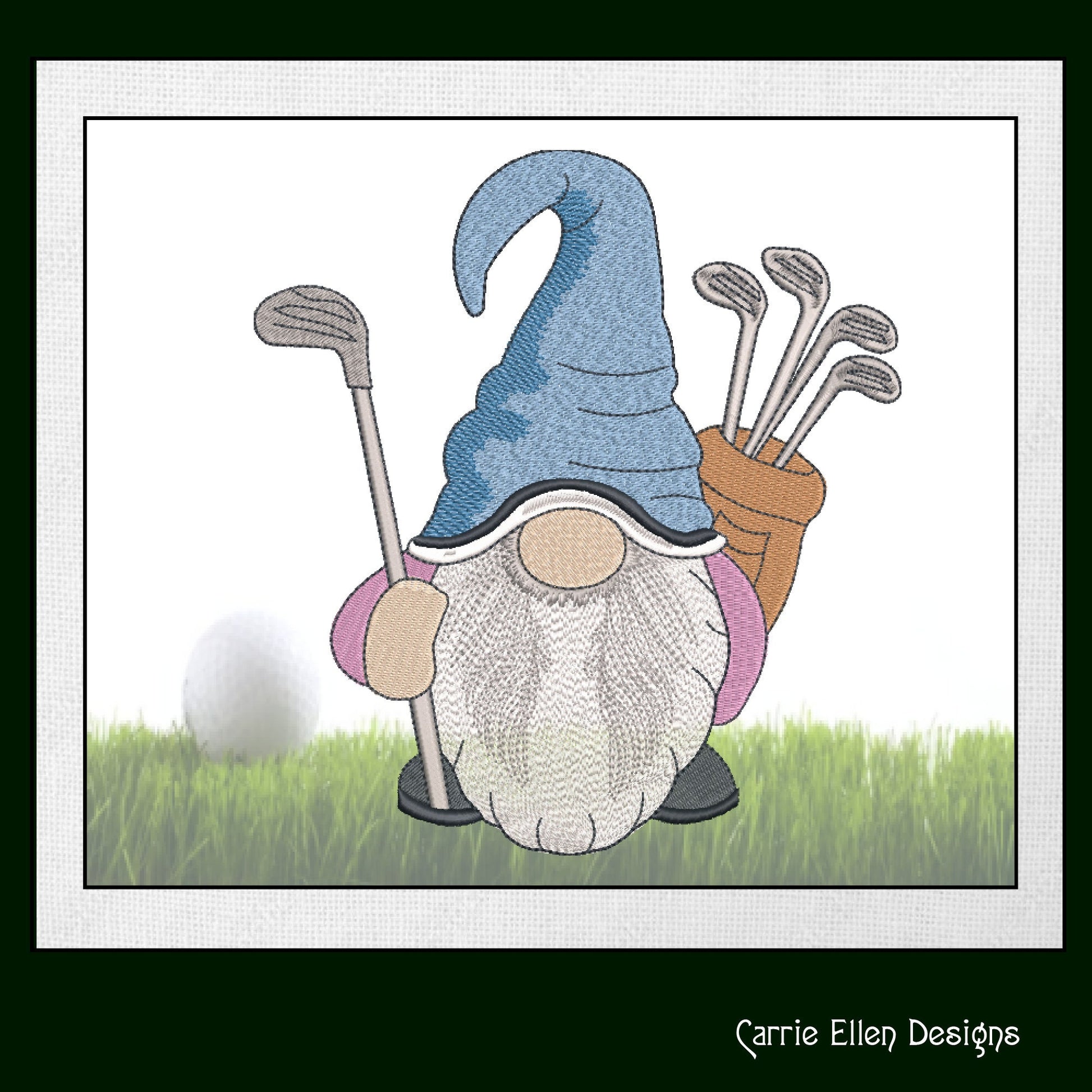 Golfer Gnome Machine Embroidery Design | Fun Golf Design | Gnome with Golf Clubs and Golf Bag | 6 Sizes (1702)