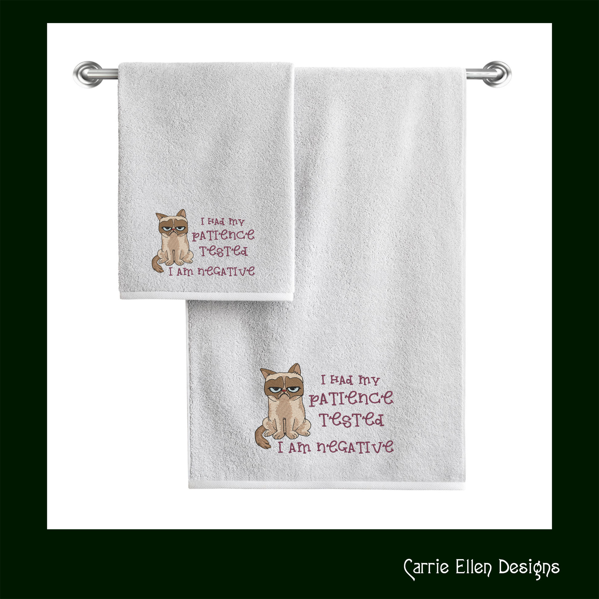 Grumpy Cat Machine Embroidery Design – Patience Tested Negative Sarcastic Funny Quote – 6 Sizes (1193)