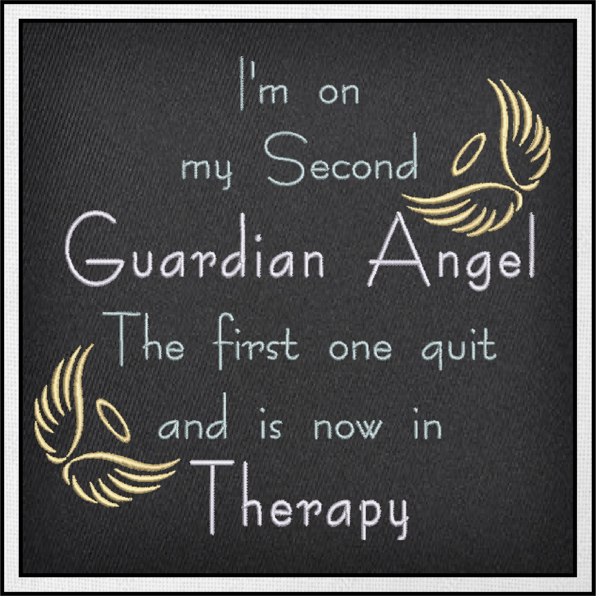 Guardian Angel Machine Embroidery Design | Guardian Angel is in Therapy Funny Quote | Sarcastic and Humorous Saying Embroidery | 6 Sizes (0796)