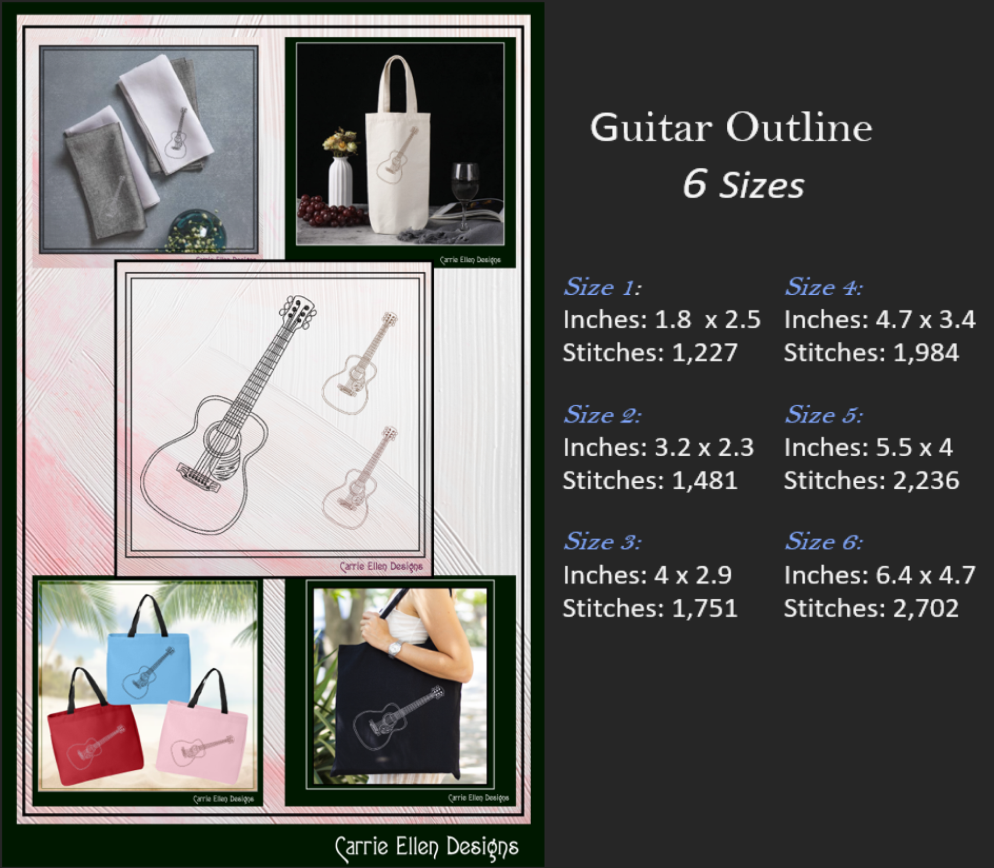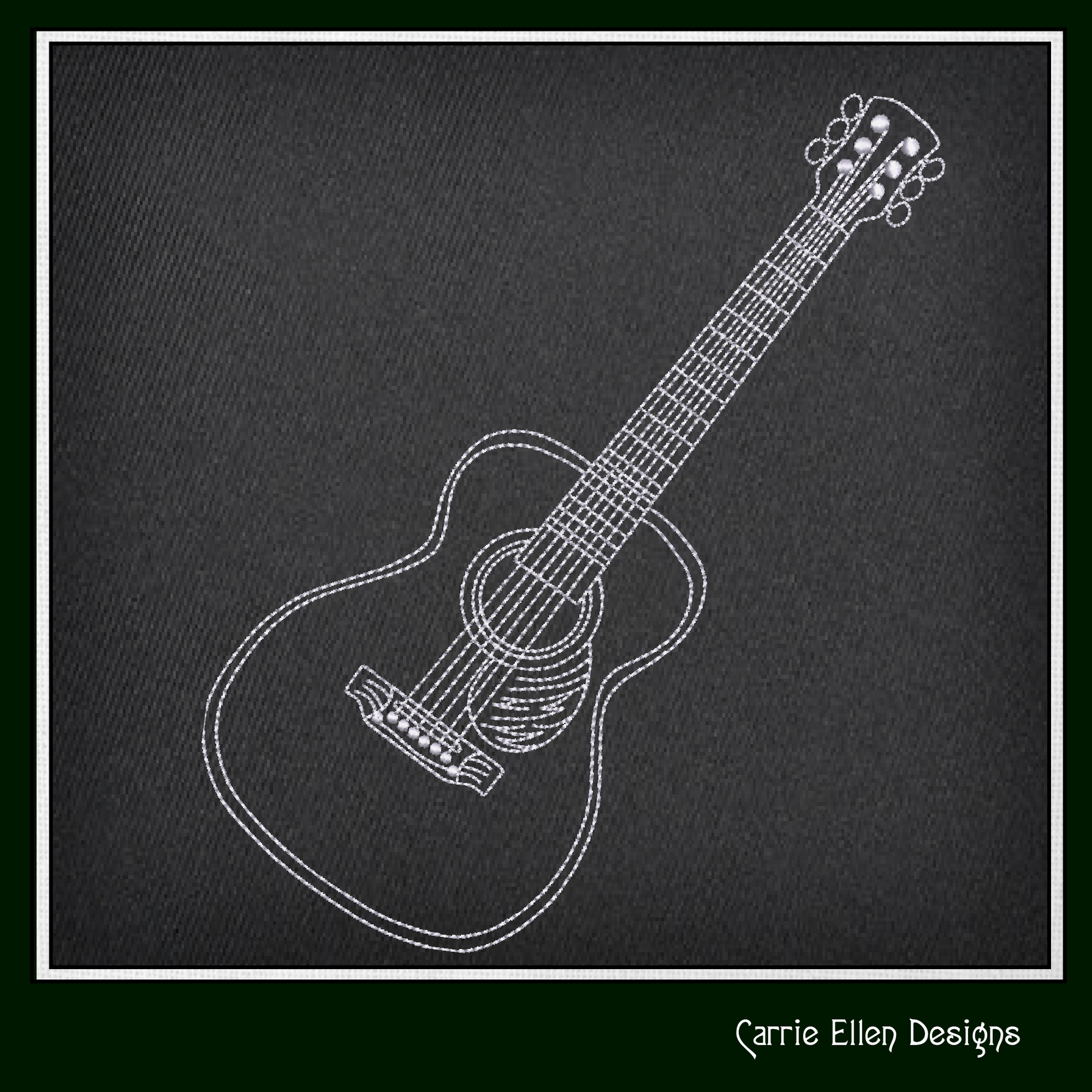 Guitar Machine Embroidery Design, Acoustic Guitar Line Art, Musical Instrument Outline, 6 Sizes (2725)