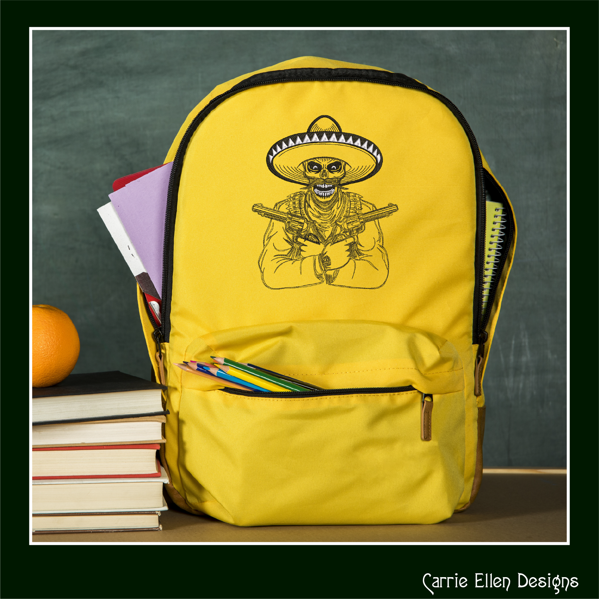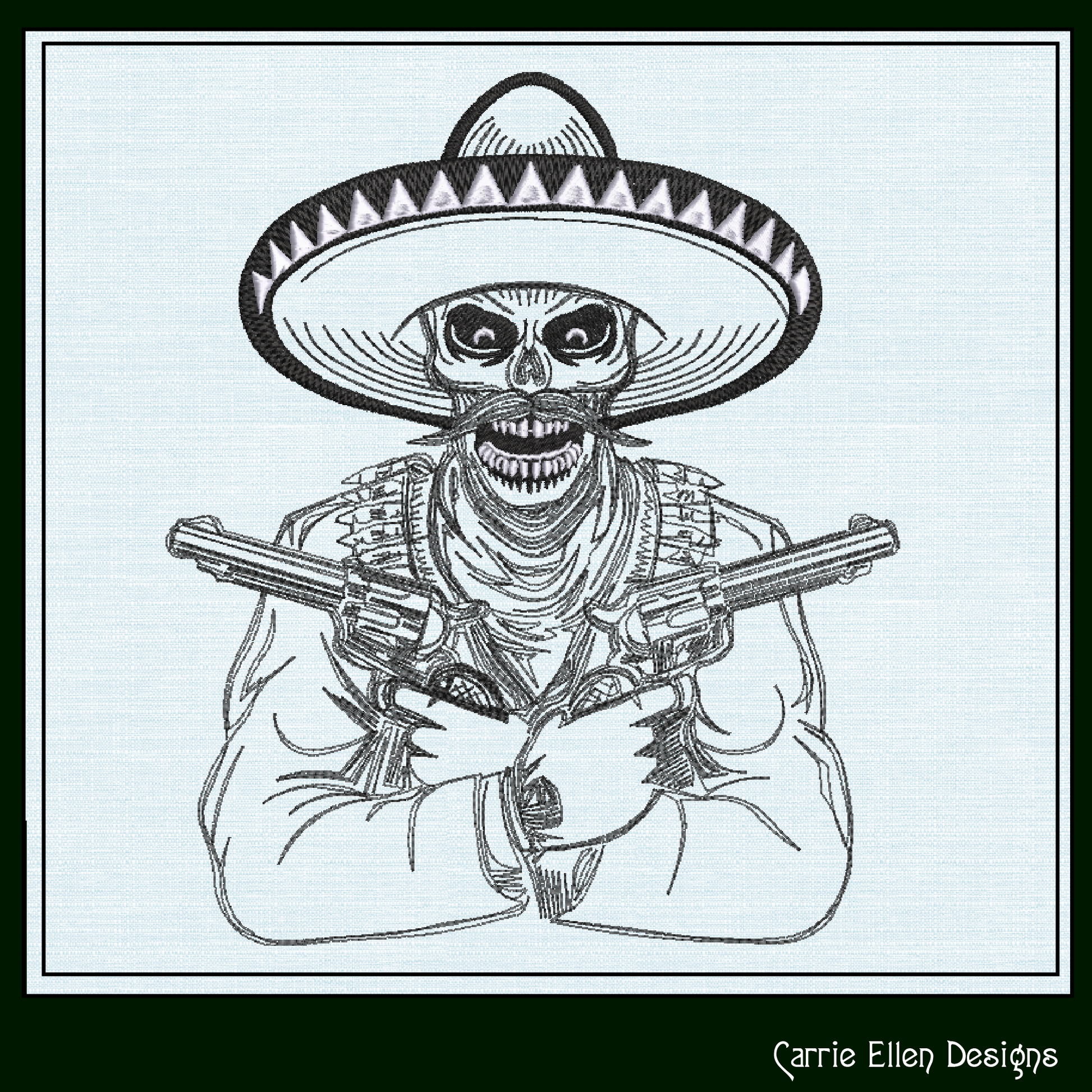 Gunslinger Outlaw Machine Embroidery Design, Desperado in Sombrero Line Art Sketch, Skull and Guns Design, 6 Sizes (2742)
