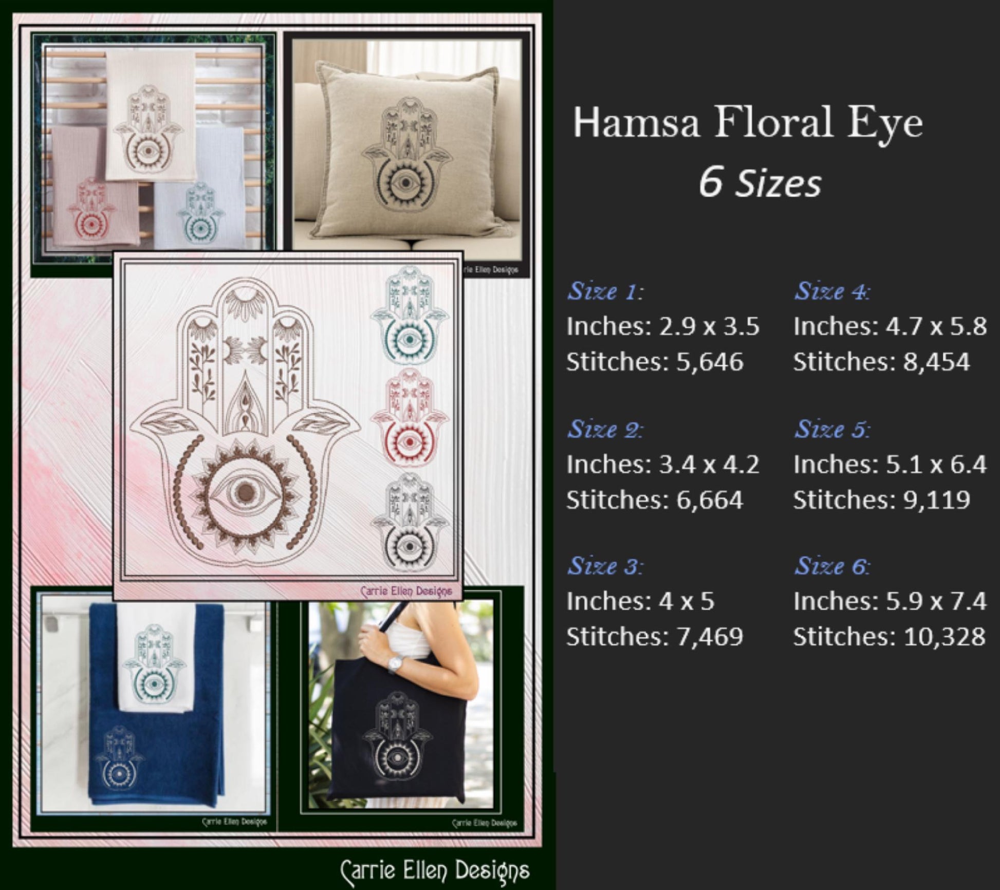 Hamsa Machine Embroidery Design, Hand of Fatima, Strength and Happiness. Symbolic Ornamental Hand, 6 Sizes (3020)