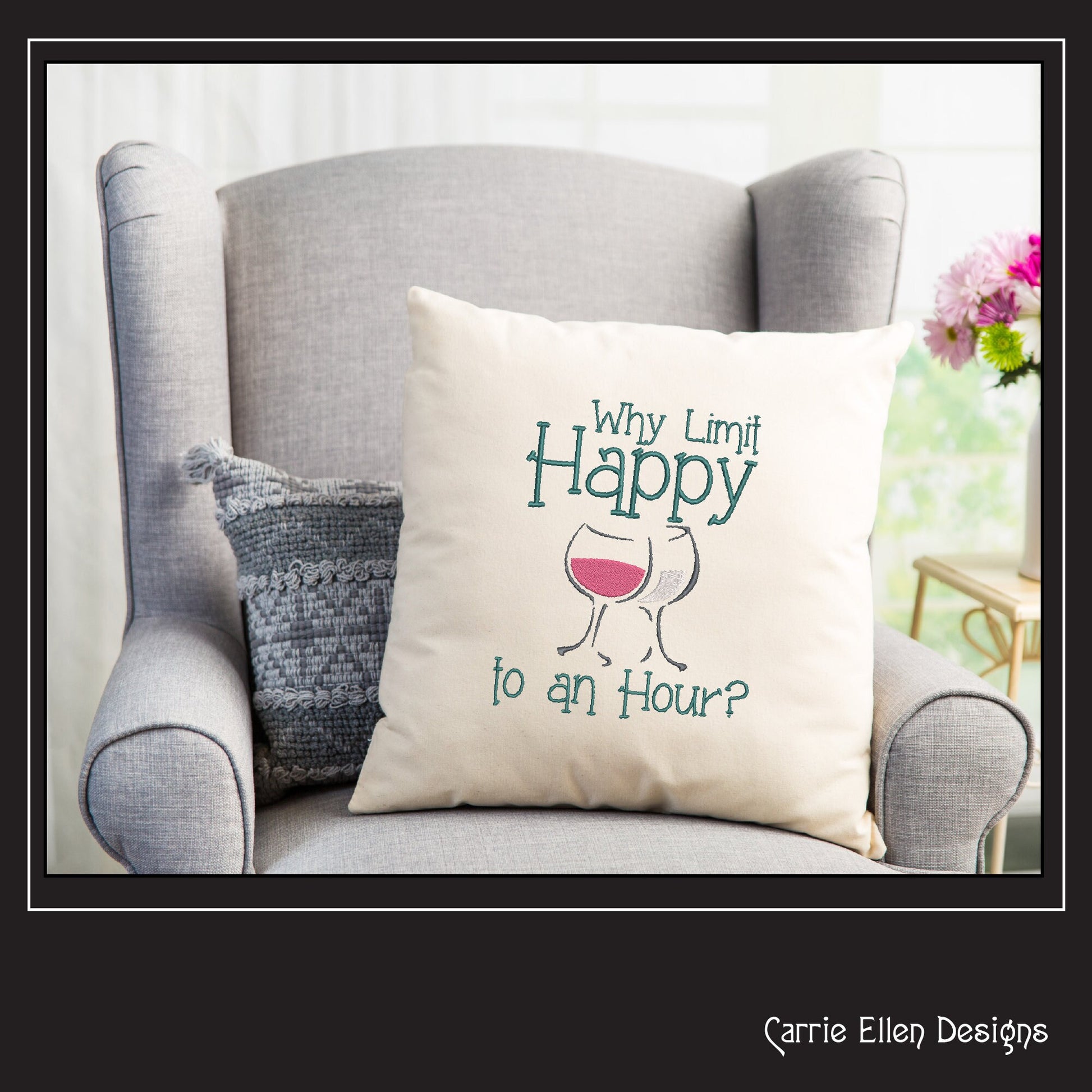 Happy Hour Embroidery Design | Why Limit Happy Machine Embroidery | Wine Glass Design | Funny Wine Saying | 8 Sizes (1120)