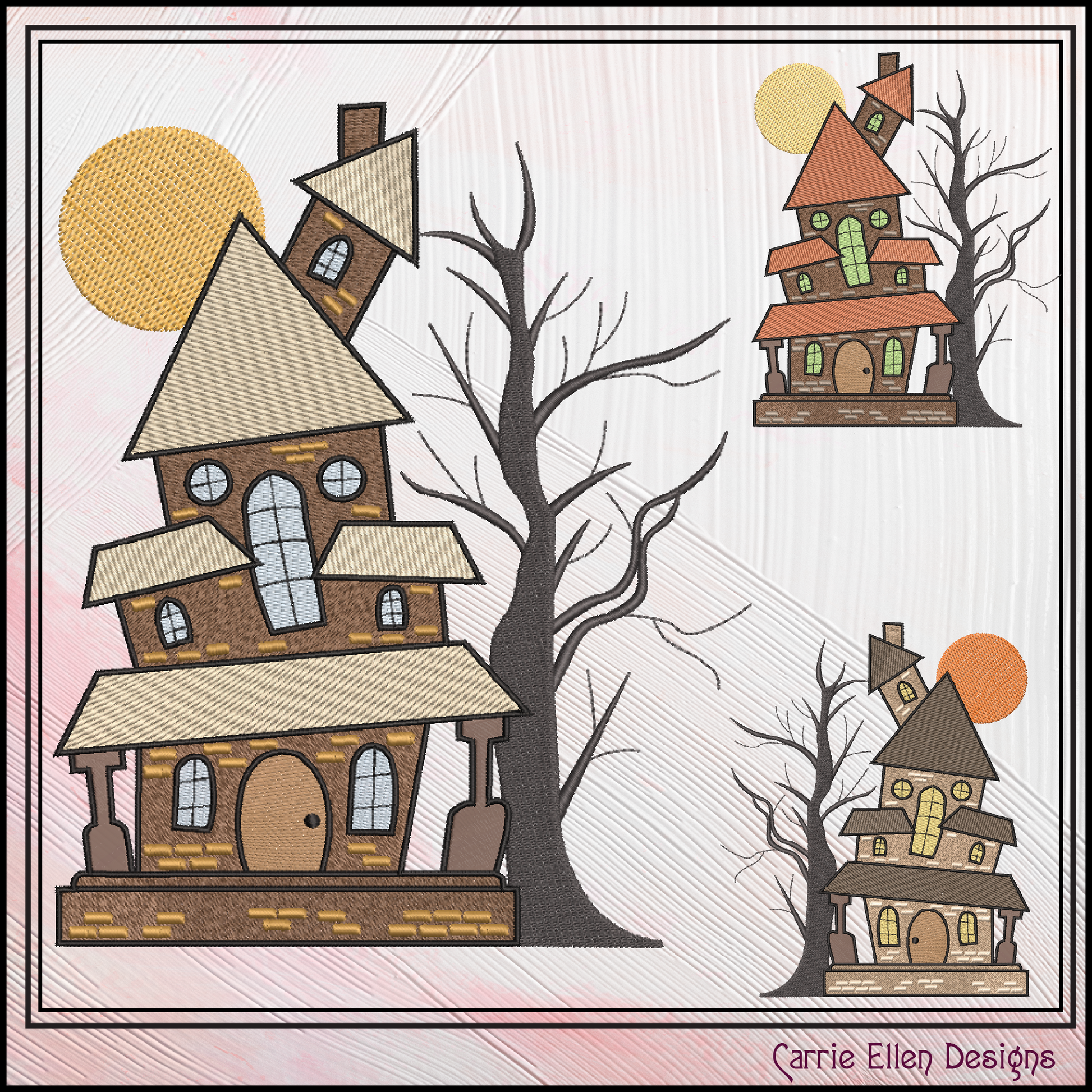 Crooked Haunted House Machine Embroidery Design – Spooky Halloween Pattern, 6 Sizes (3648)