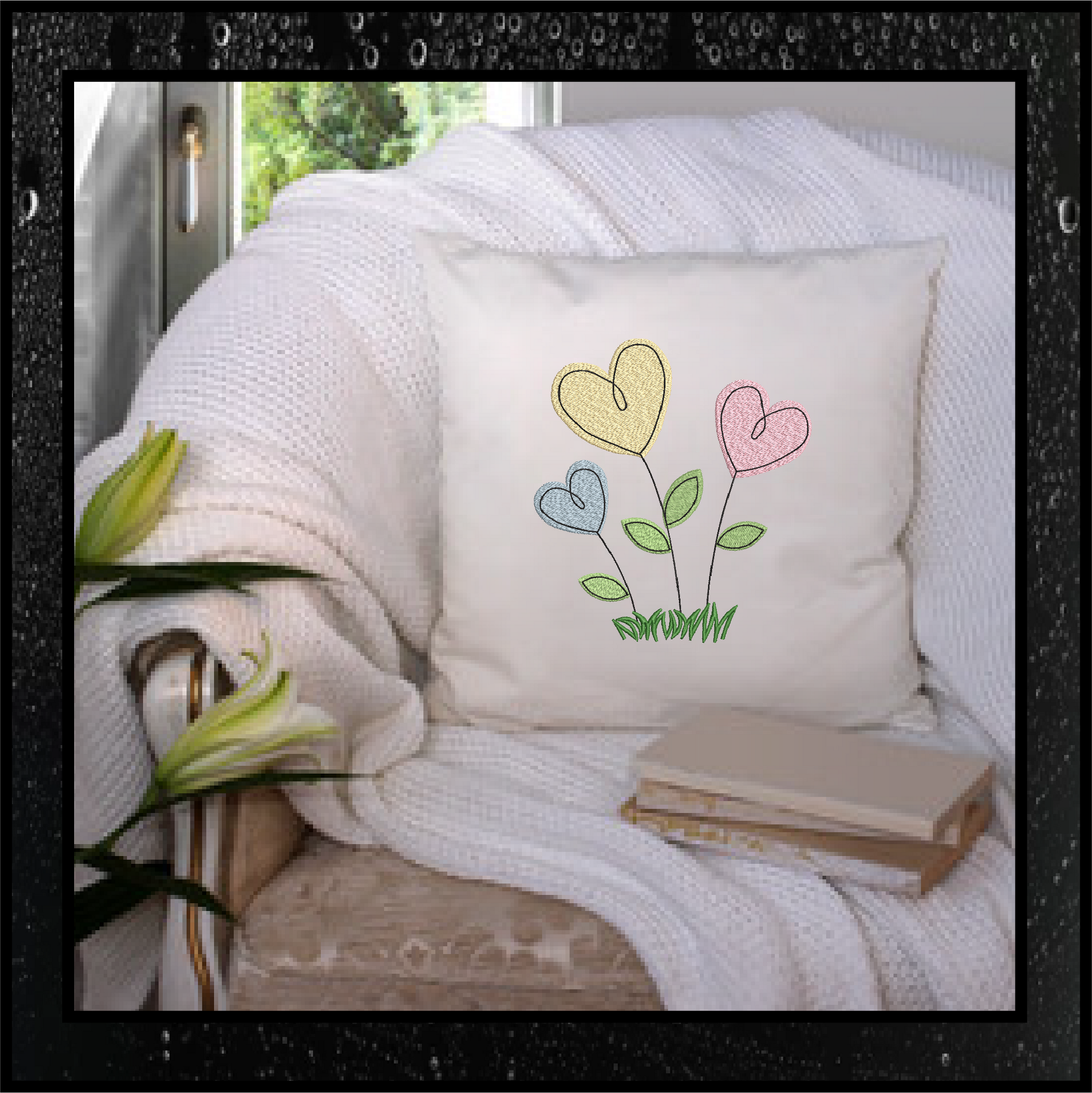 Heart Flowers Machine Embroidery Design | Valentine's Day Love Garden Flowers | 4 Sizes (0409)