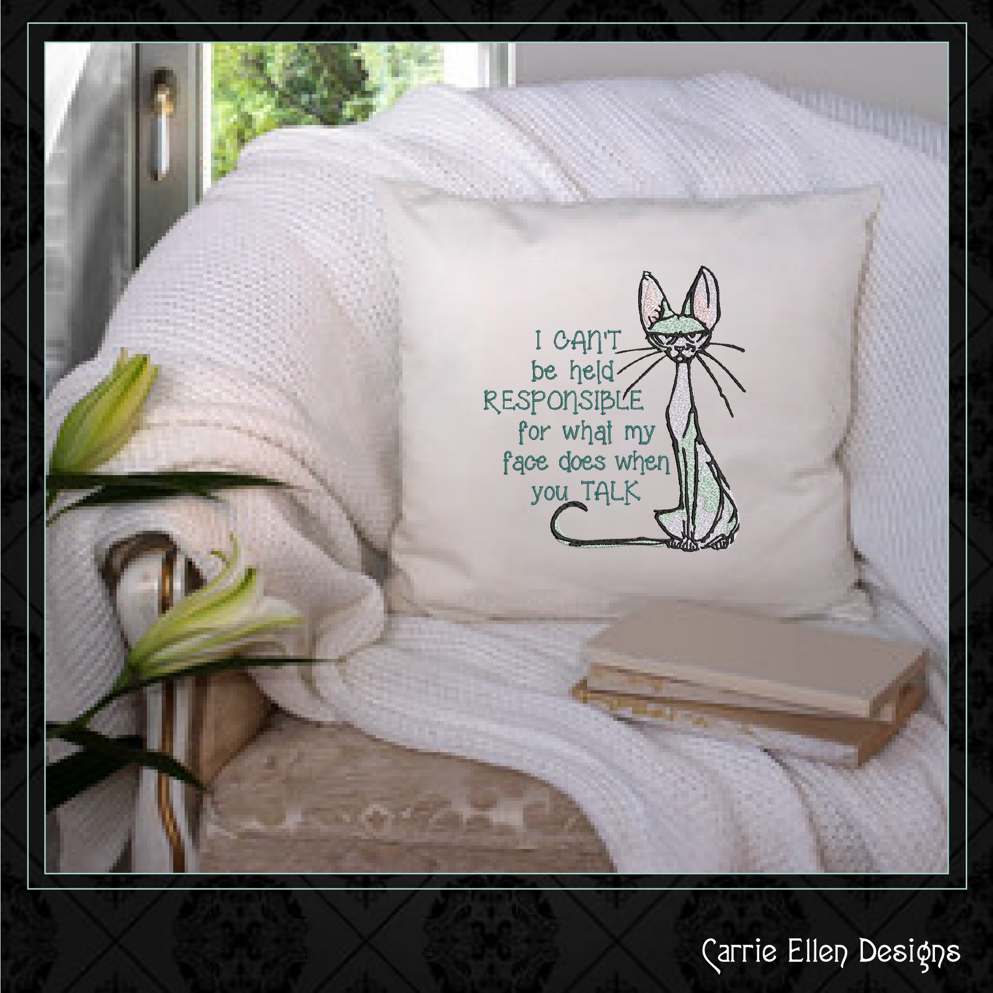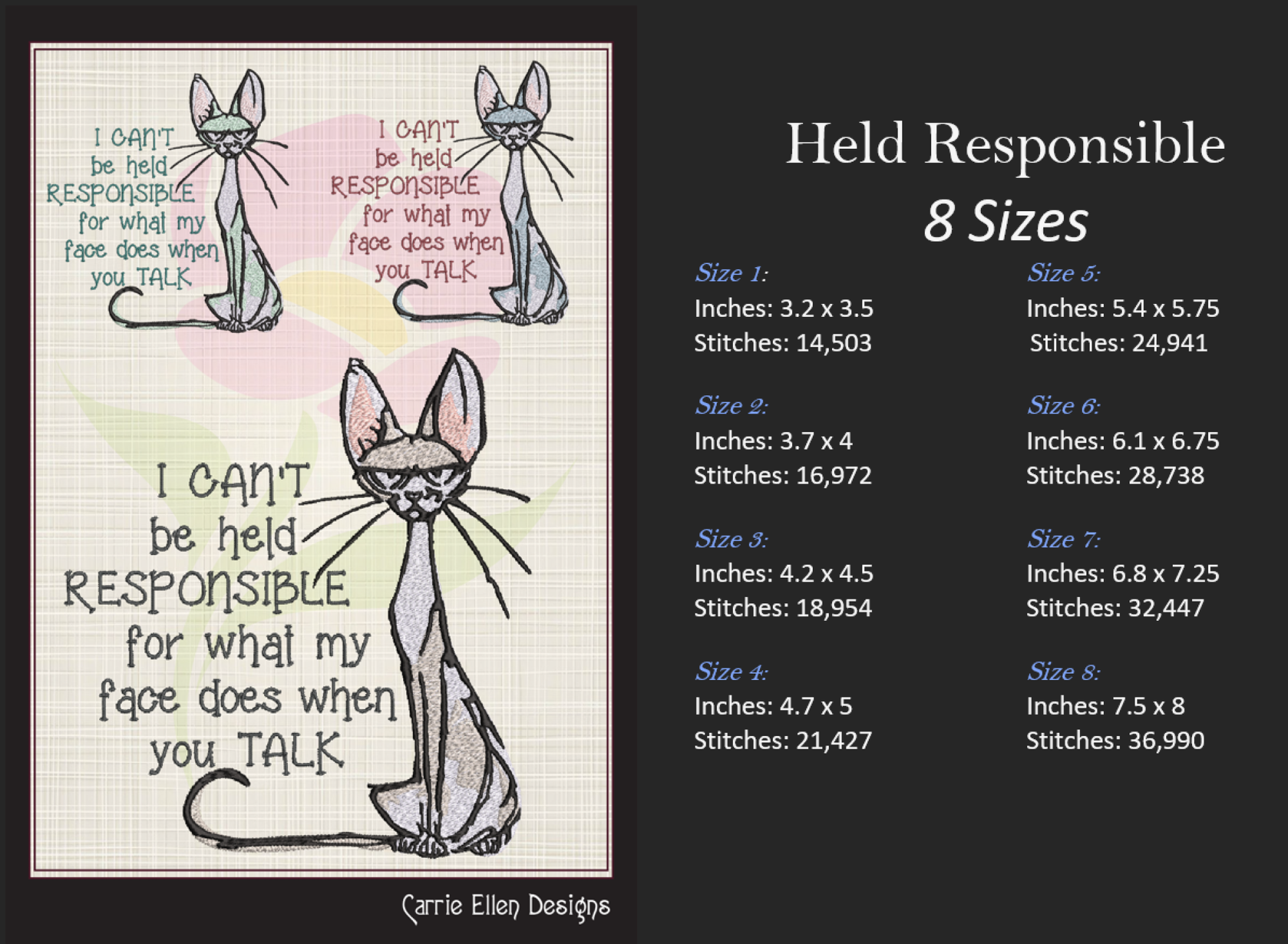 Can't Be Held Responsible Cat Machine Embroidery Design – Funny Snarky Kitty Quote, 8 Sizes (1011)