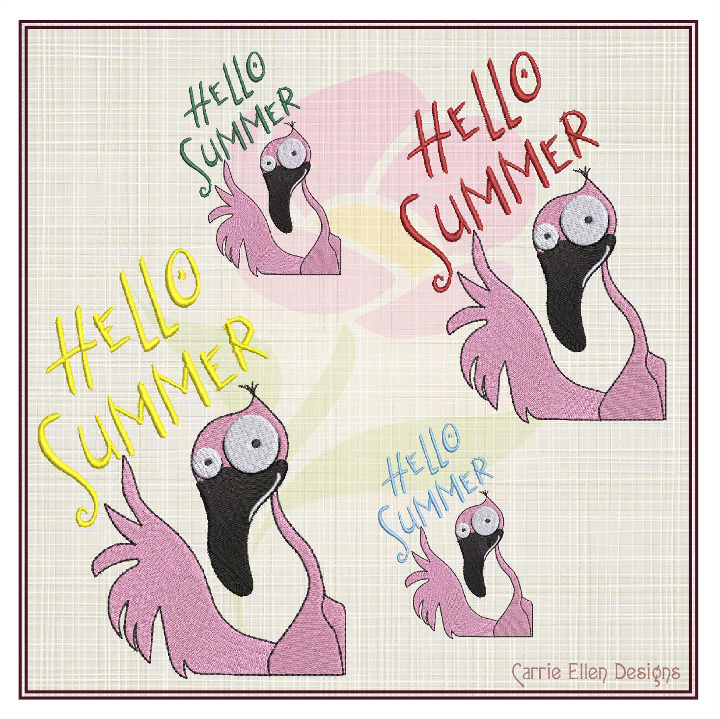 Hello Summer Flamingo Machine Embroidery Design | Funny Summer Sayings | Tropical Bird Embroidery | 8 Sizes (0822)