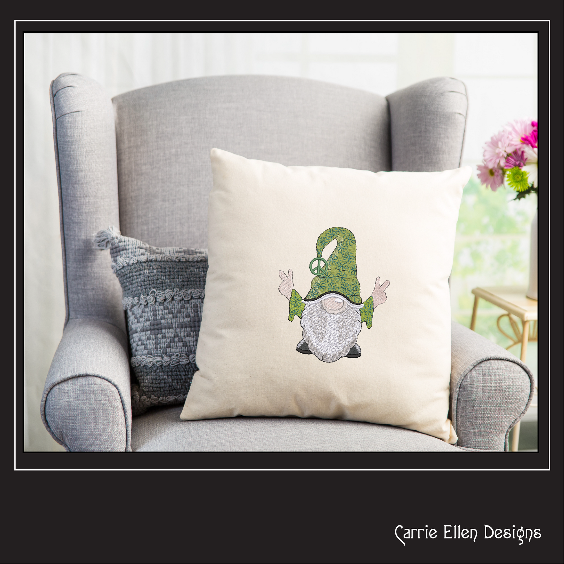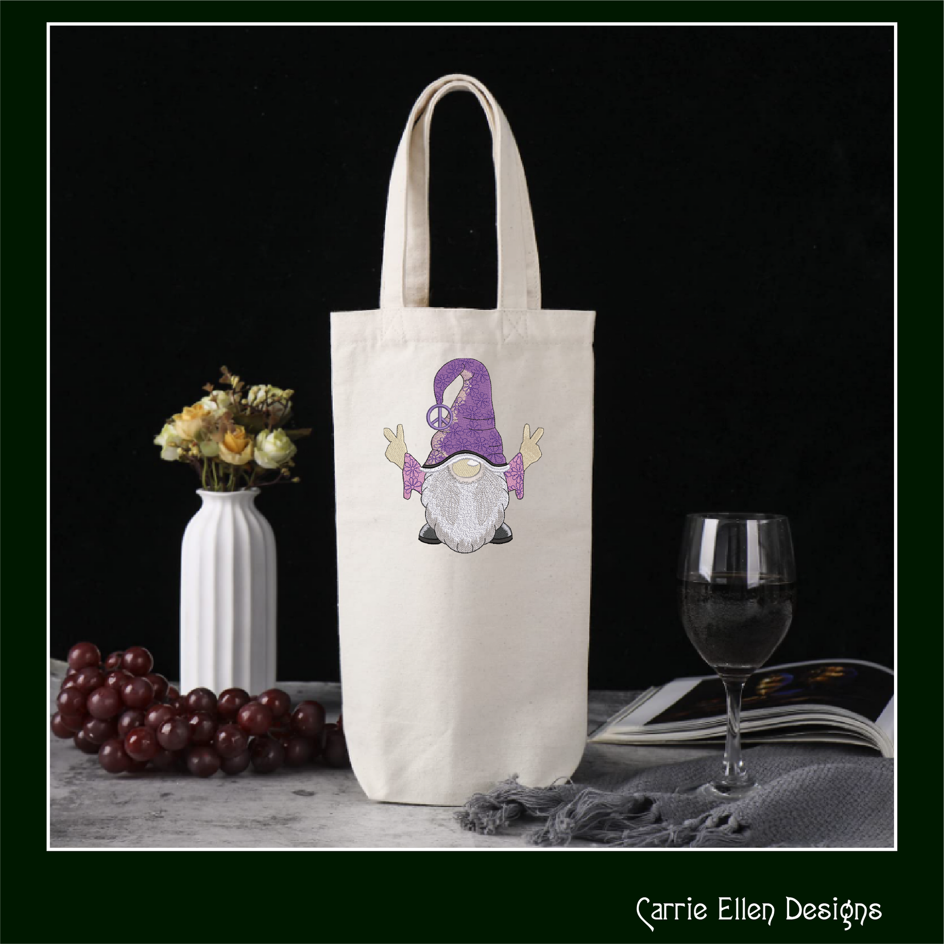 Hippie Gnome Machine Embroidery Design – Peace and Love, Hipster Gnome, 6 Sizes (1239)
