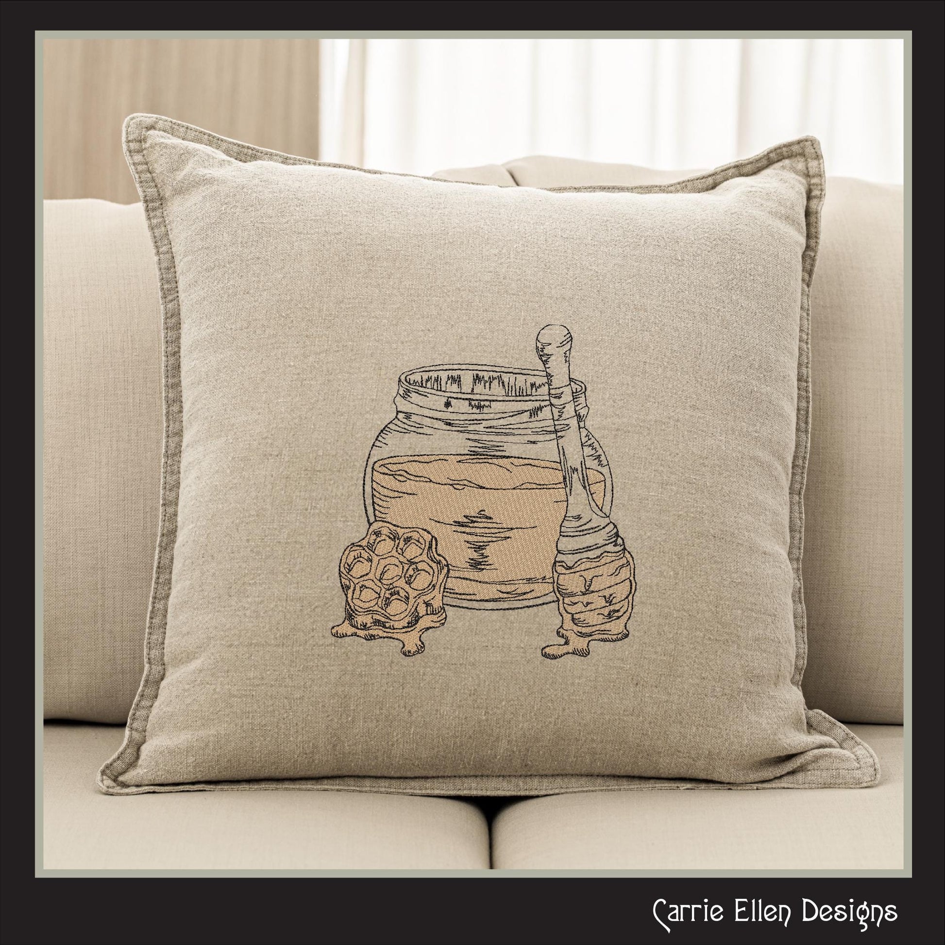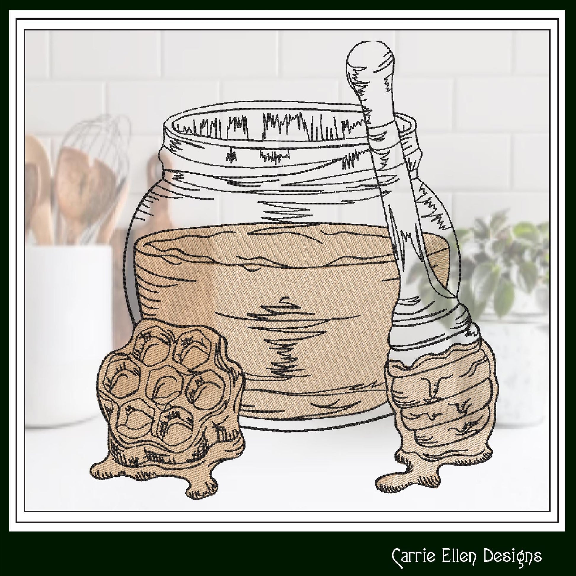 Honey Jar Machine Embroidery Design, Honeycomb Sketch Line Art, Sweet Bee Nectar Pattern, 6 Sizes (3168)