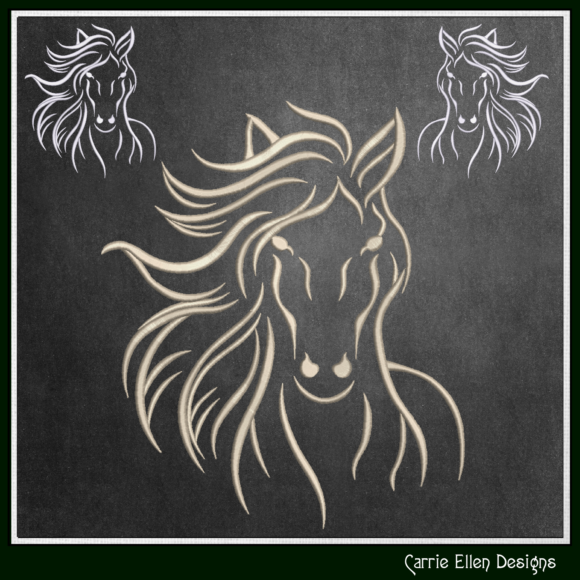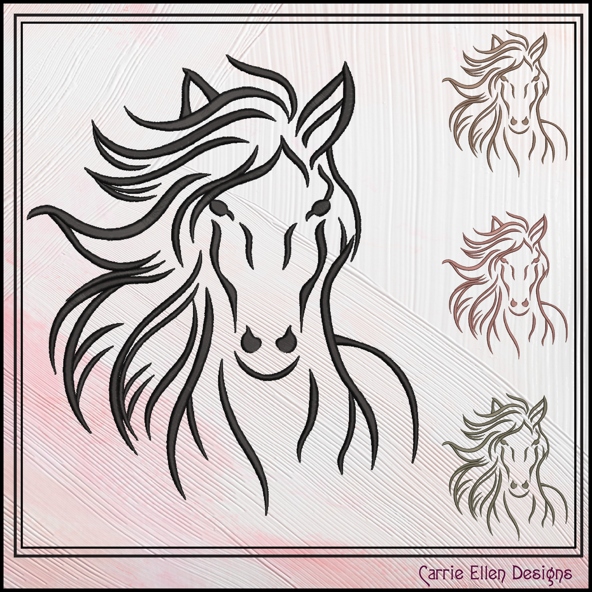 Artistic Equestrian Horse Profile – Machine Embroidery Design, 6 Sizes (3686)