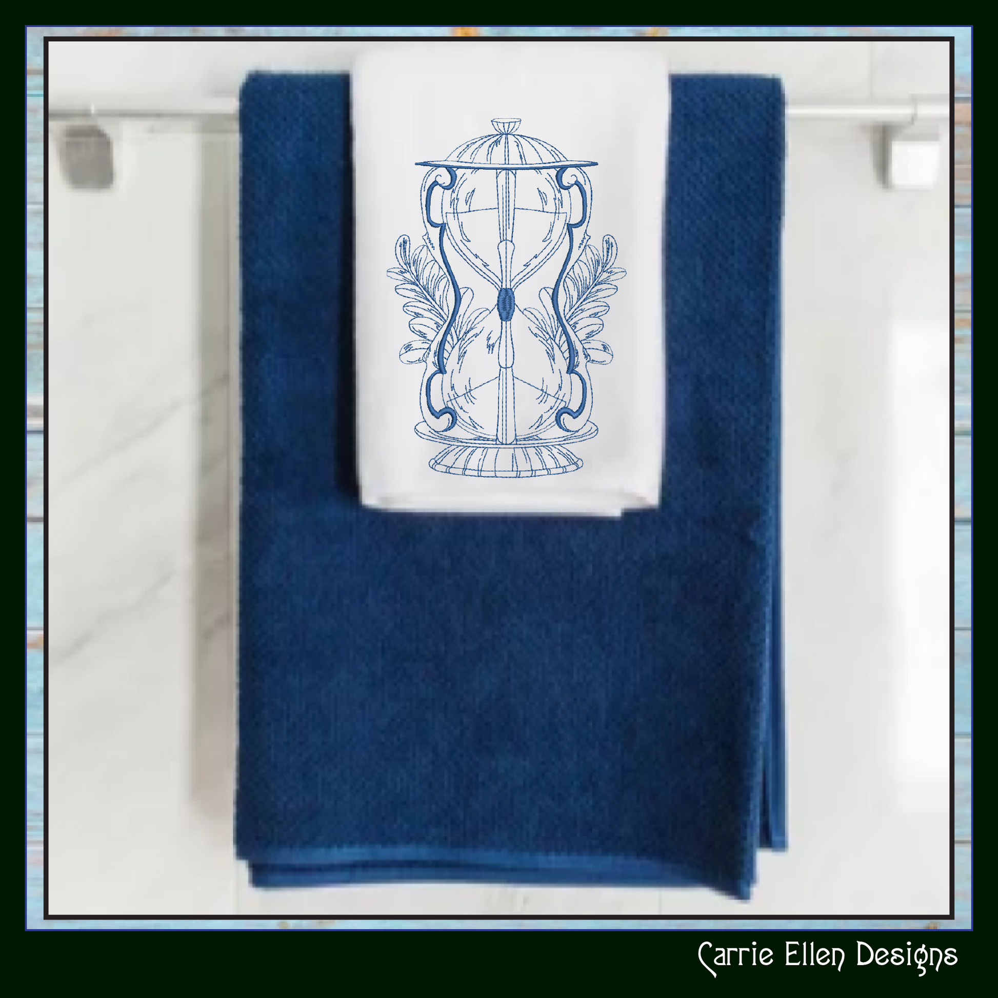 Hourglass Machine Embroidery Design, Eucalyptus Leaf Line Art Timepiece Sketch Design, 6 Sizes (3031)