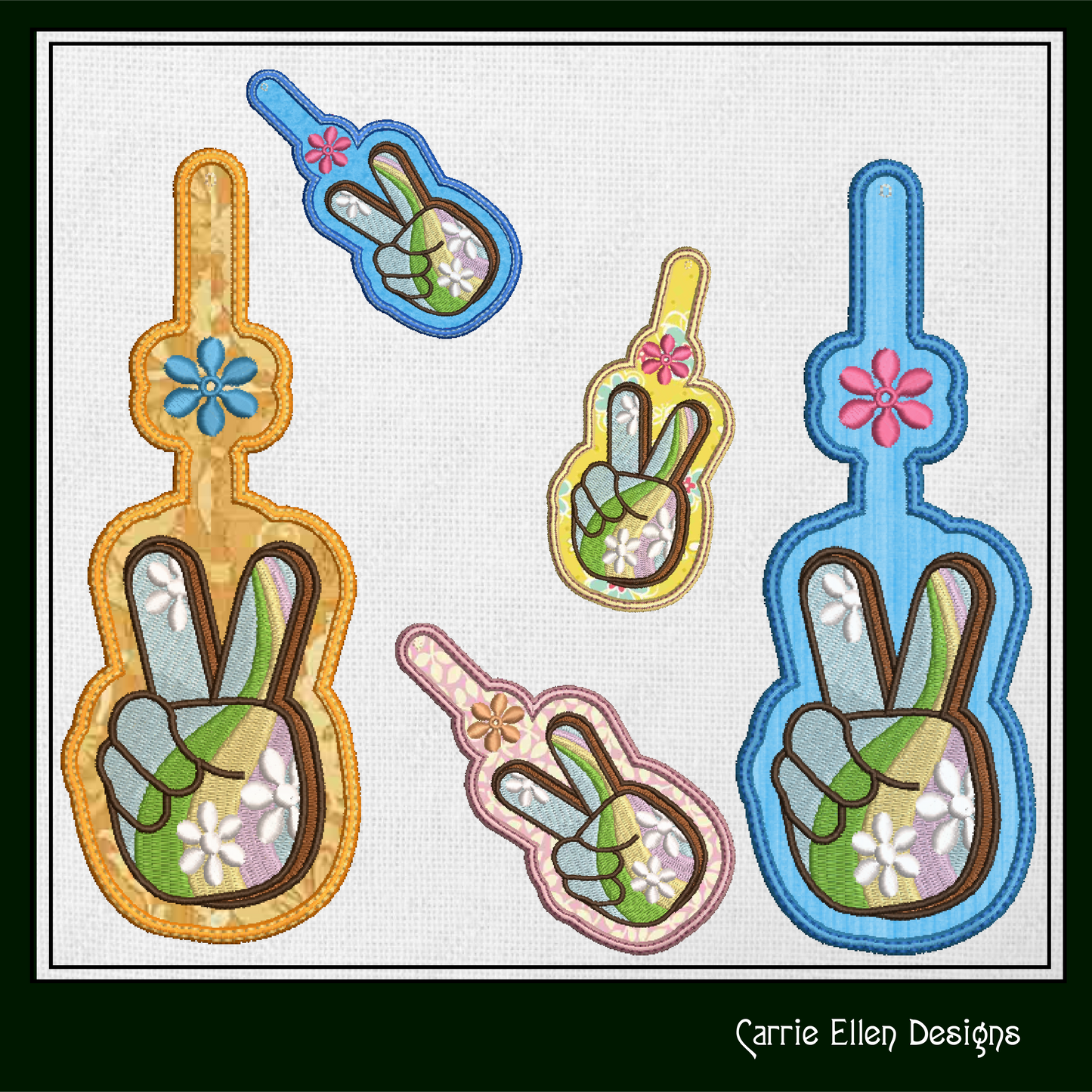Peace Sign Hand ITH Key Fob Machine Embroidery Design – Boho Hipster In The Hoop Key Tag, Embroidery Project (1270)
