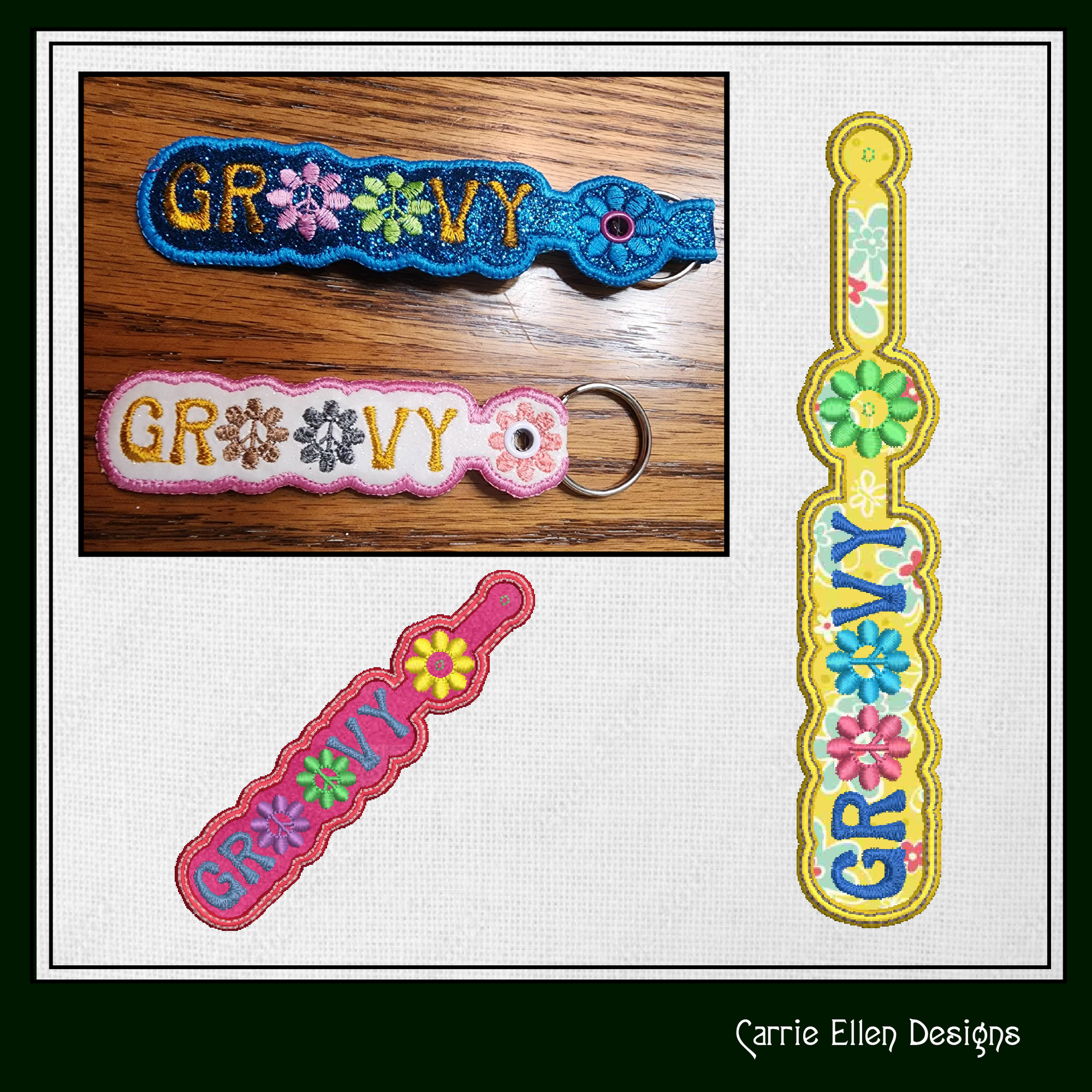 Groovy ITH Key Fob Machine Embroidery Design | Hipster Boho Key Tag, In The Hoop Project (1288)