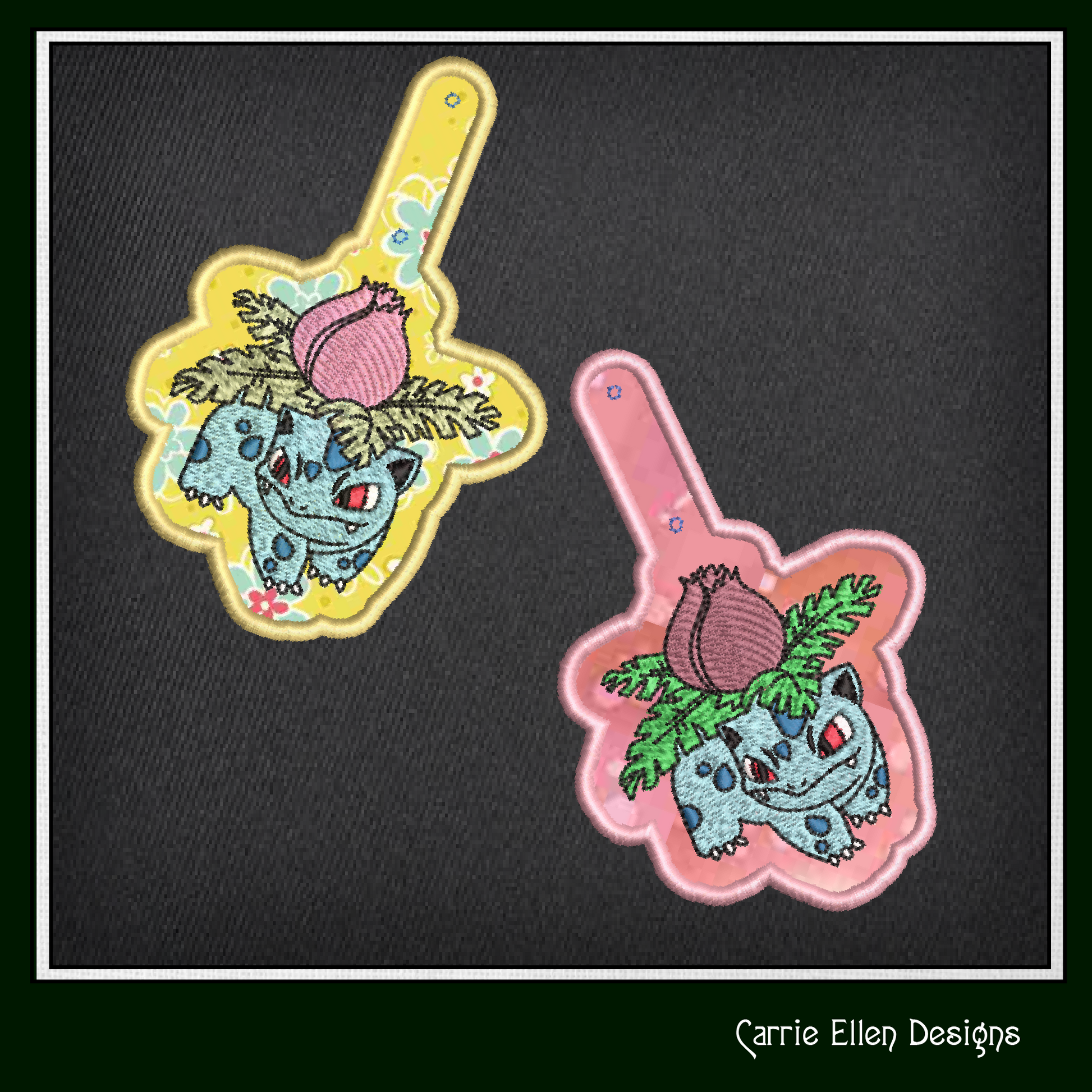 Ivysaur ITH Key Fob Machine Embroidery Design | Pokémon In-The-Hoop Key Tag Project (1861)