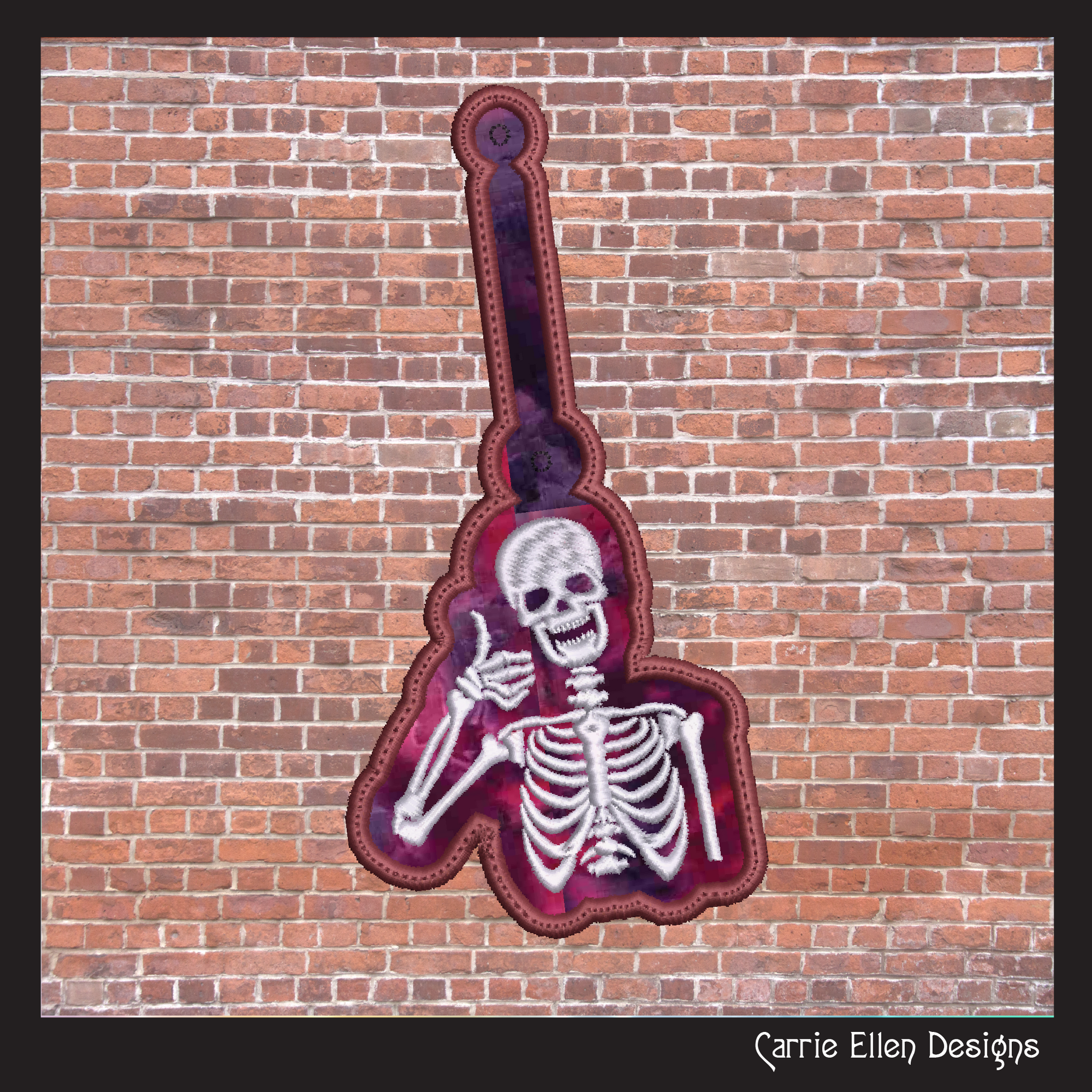Skeleton ITH Key Fob Machine Embroidery Design | Thumbs Up Skeleton In-The-Hoop Key Tag (2184)