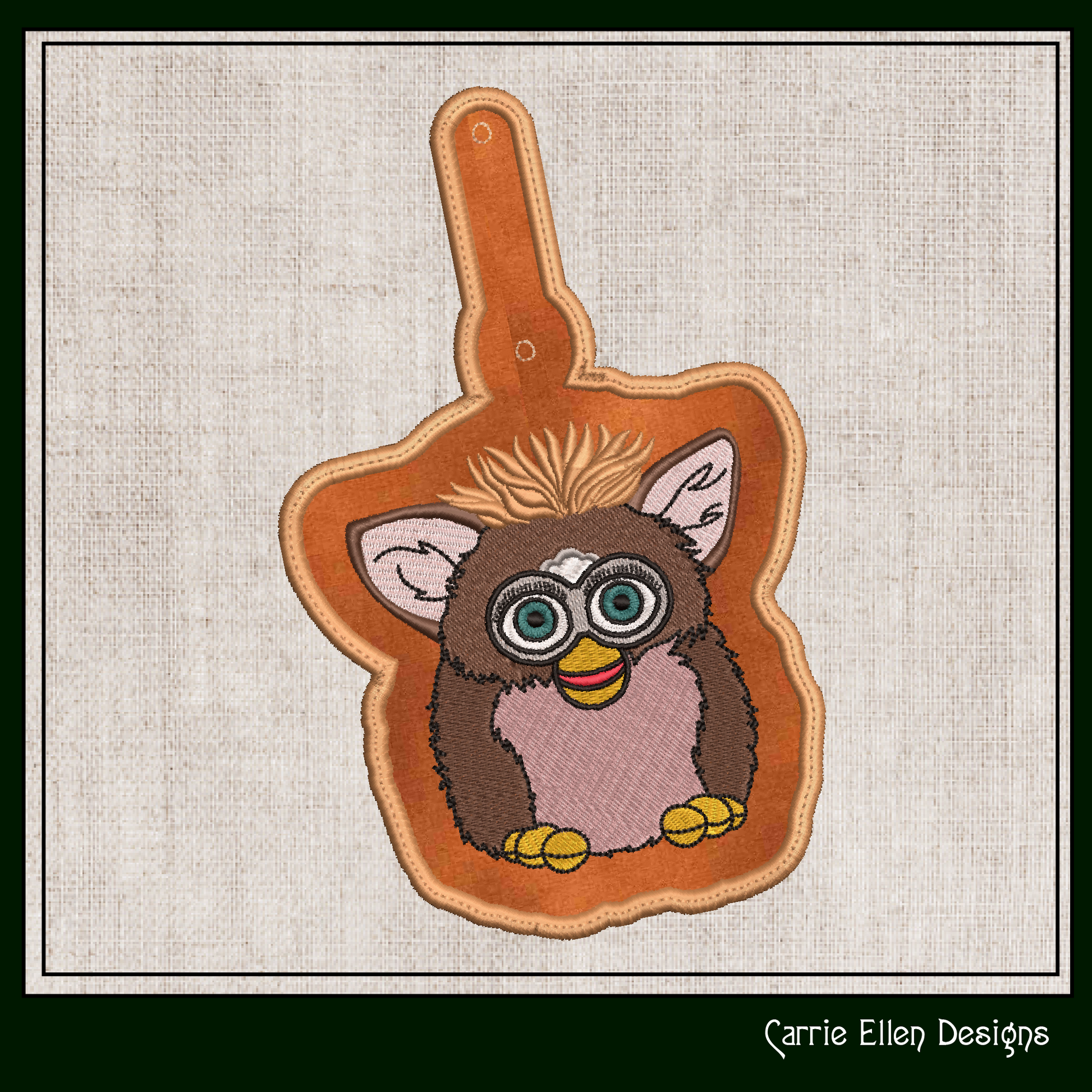 Furby ITH Key Fob Machine Embroidery Design | Nostalgic Robotic Toy In-The-Hoop Bag Tag Fan Art (2275)