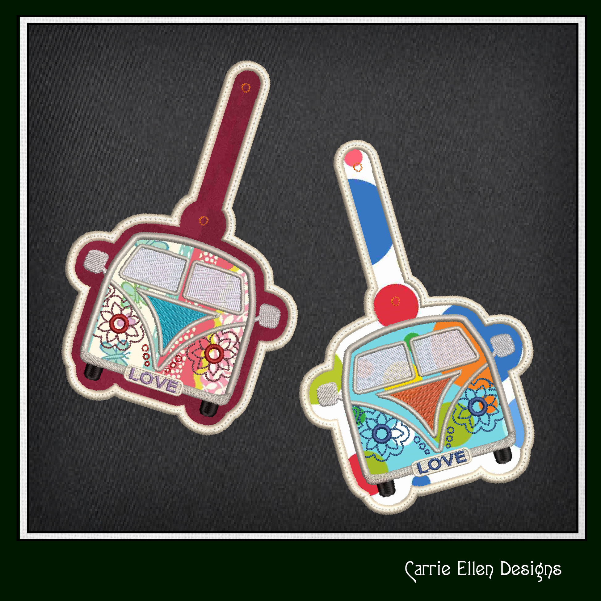Retro Love Bus ITH Key Fob Machine Embroidery Design, Boho Hippie Van In-The-Hoop Embroidery Project (2701)