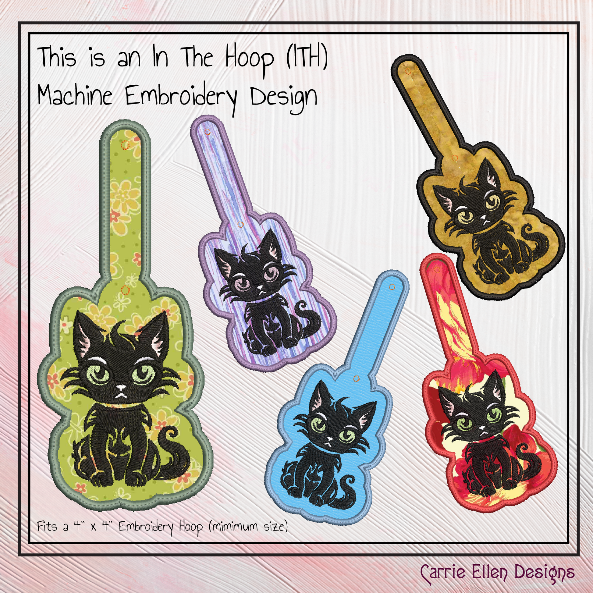 Sassy Black Cat ITH Key Fob Machine Embroidery Design | Attitude Cat Lover In-The-Hoop Key Tag (2702)