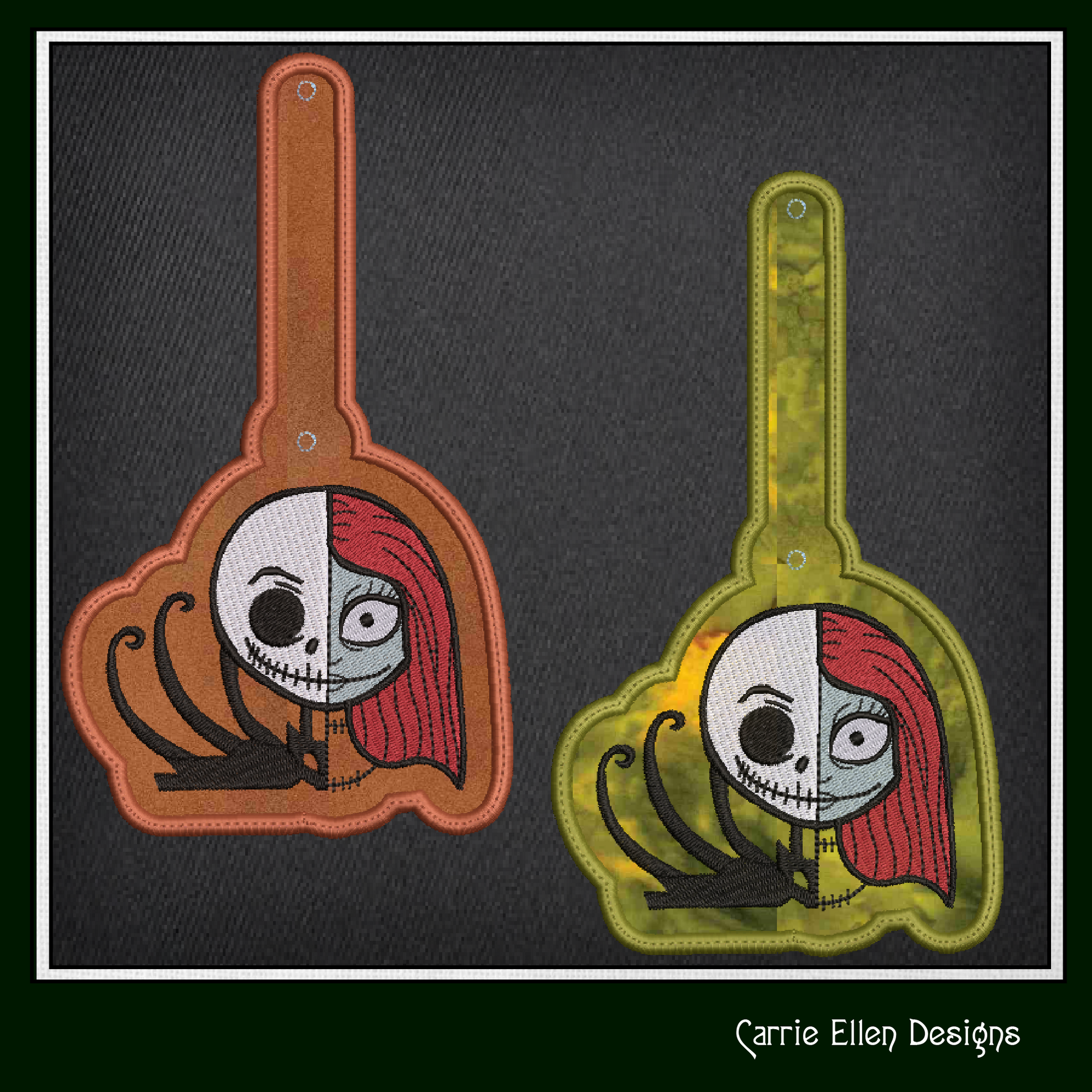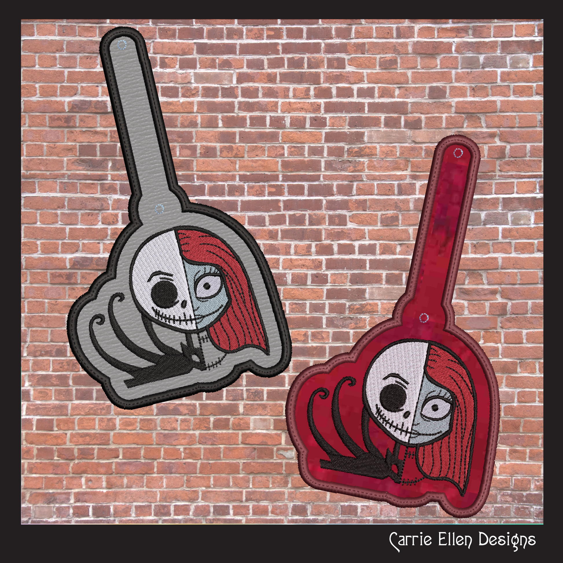 Jack Skellington ITH Key Fob Machine Embroidery Design | Sally and Jack Halloween Themed In-The-Hoop Key Tag Pattern (2801)