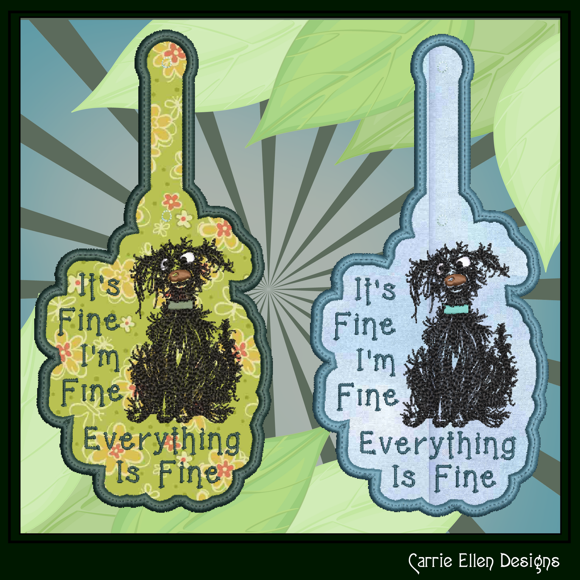 I'm Fine Dog ITH Key Fob Machine Embroidery Design | Everything Is Fine Neurotic Dog In-The-Hoop Project (2950)
