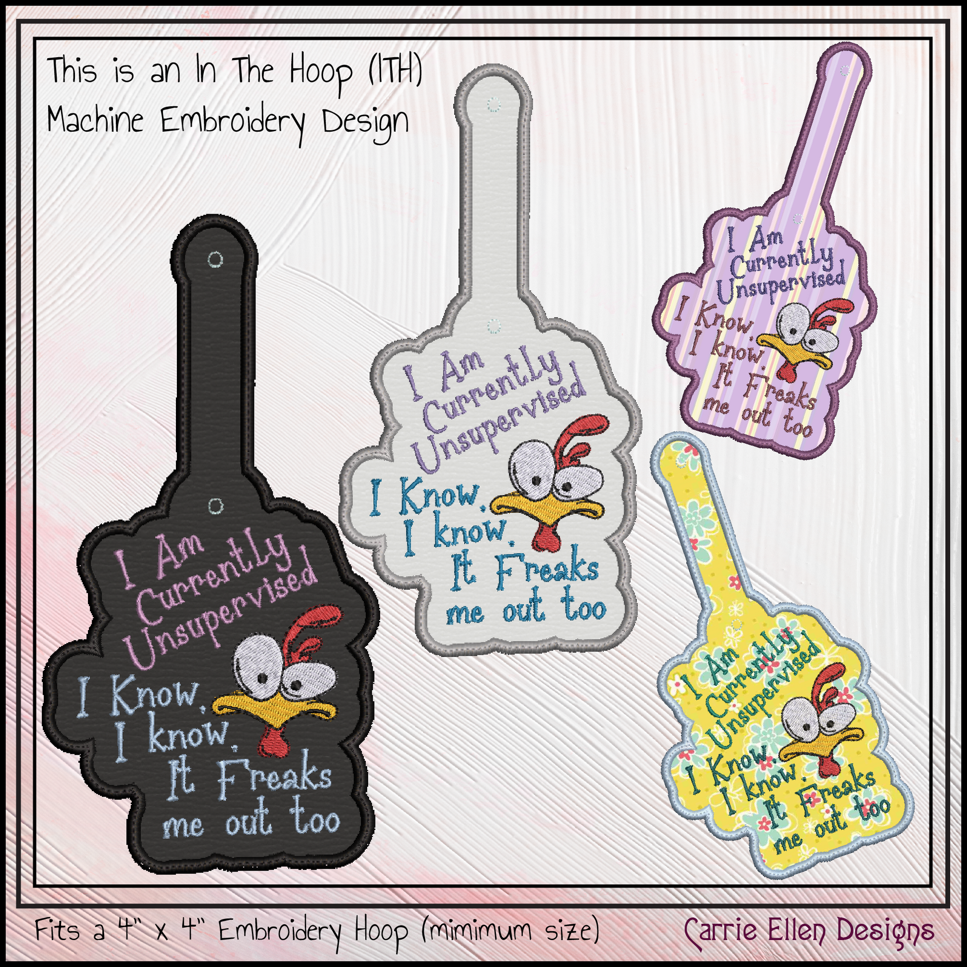 Currently Unsupervised Chicken ITH Key Fob Machine Embroidery Design | Funny In-The-Hoop Key Tag Project (2951)