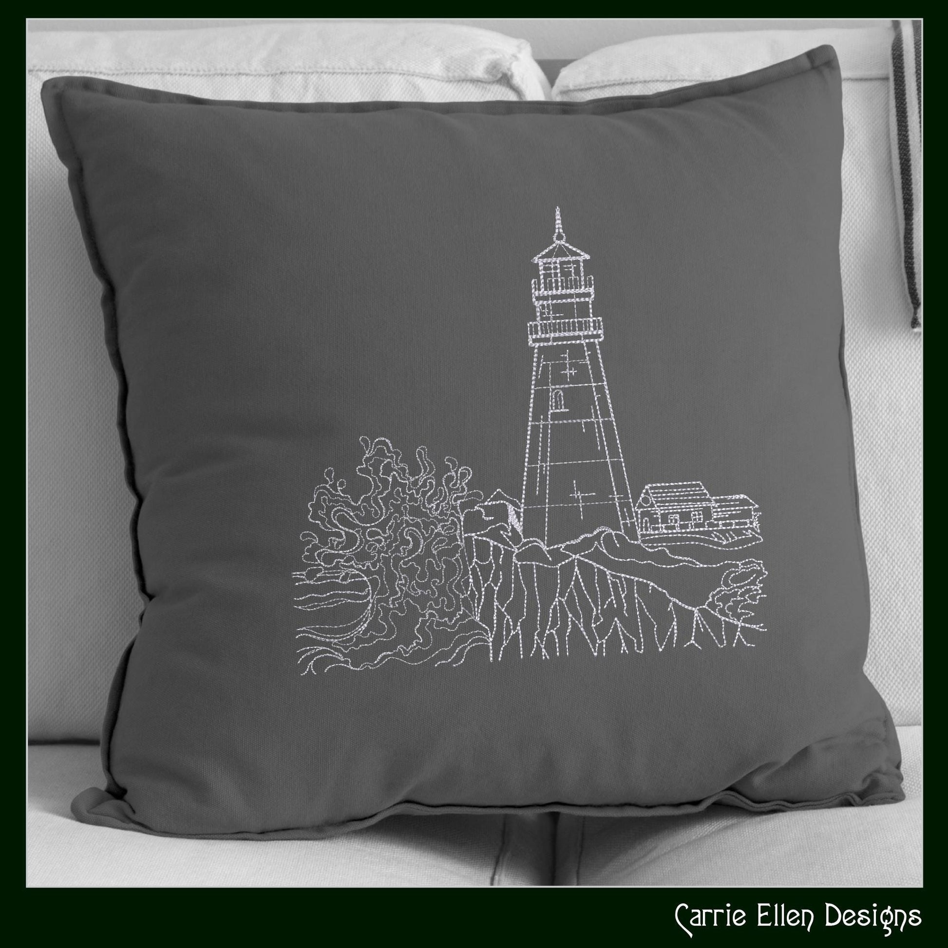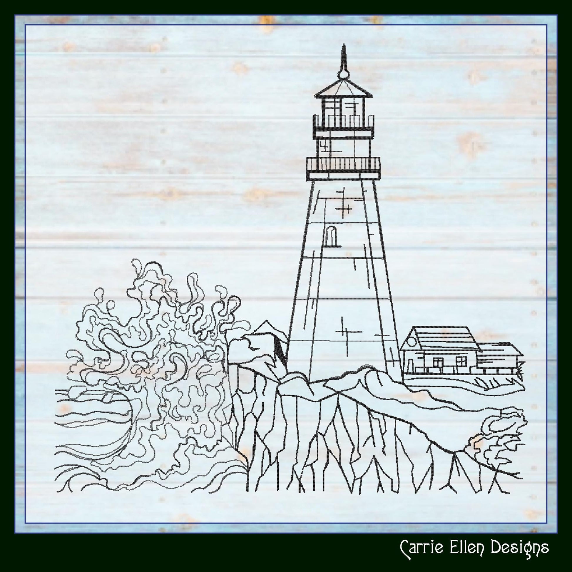 Lighthouse Embroidery Design – Cliffside Lighthouse Sketch, Coastal Island Design, 6 Sizes (3179)
