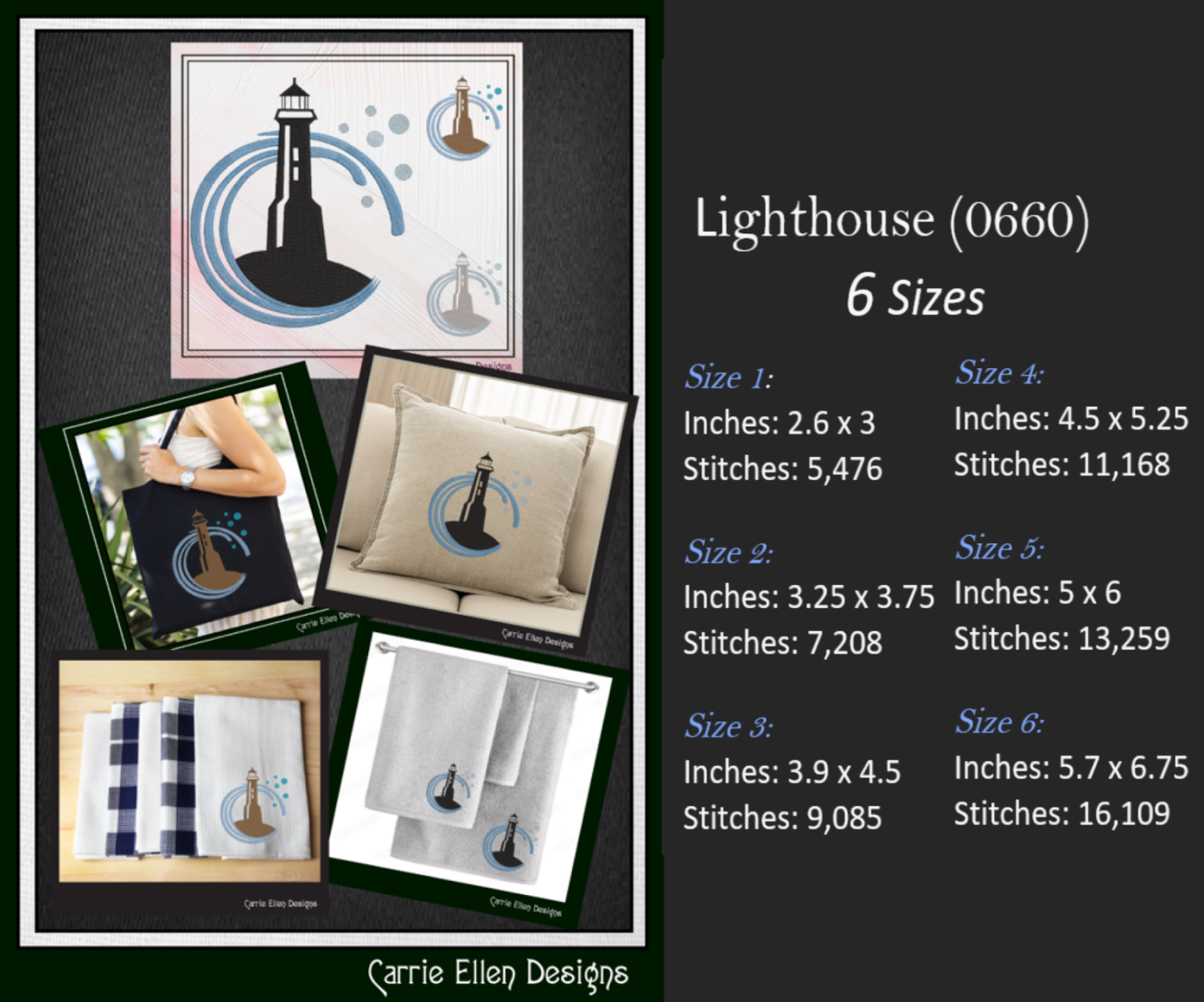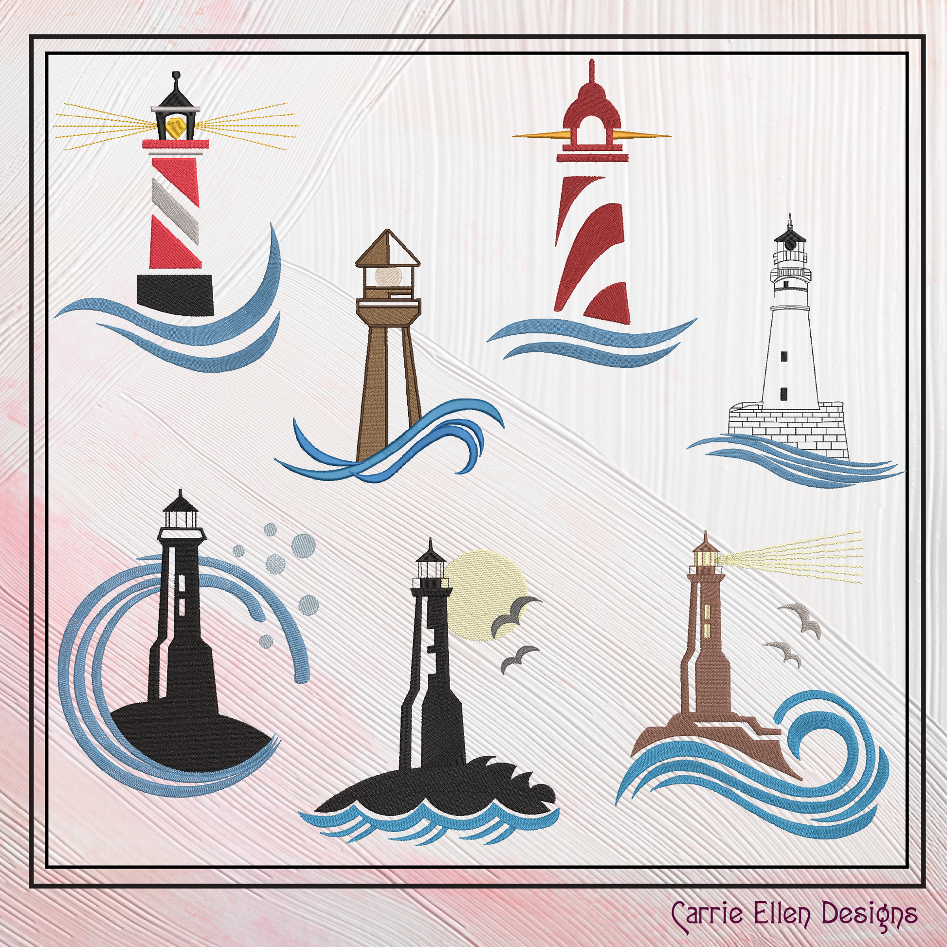 Lighthouse Machine Embroidery Design Bundle, Coastal Light House Island Design, Seaside Landscape, 7 Designs 6 Sizes Each Design (2378)