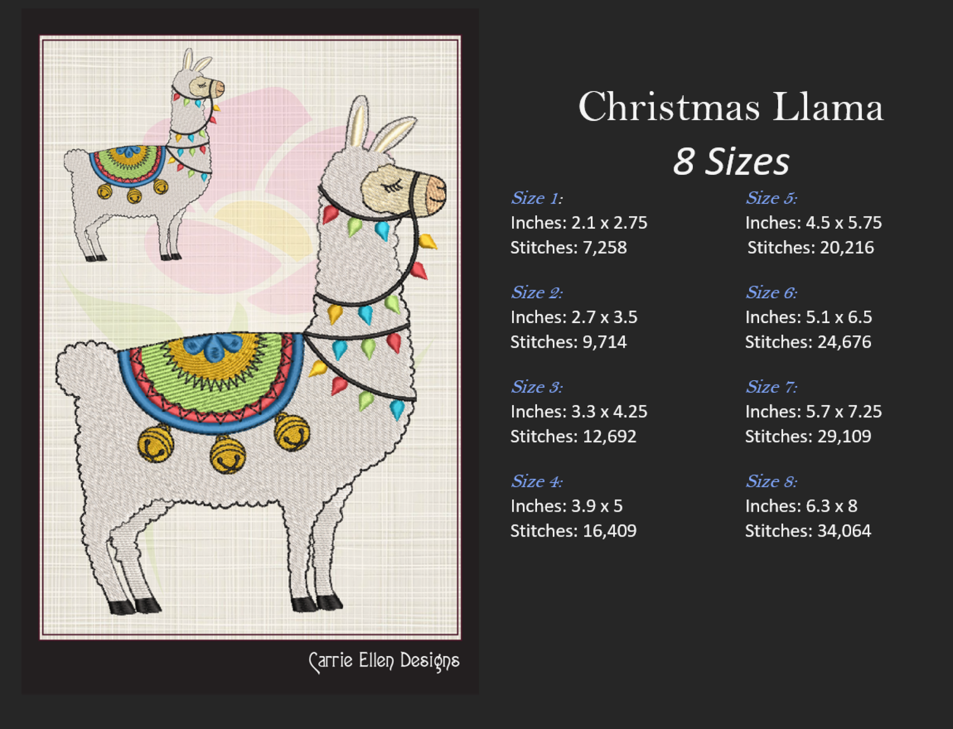 Available in 8 different sizes, this versatile design works beautifully across a range of projects — from small accents to larger holiday statement pieces. Whether you love llamas, alpacas, or simply want a whimsical touch for your Christmas embroidery collection, this pattern is a must-have for spreading holiday smiles.