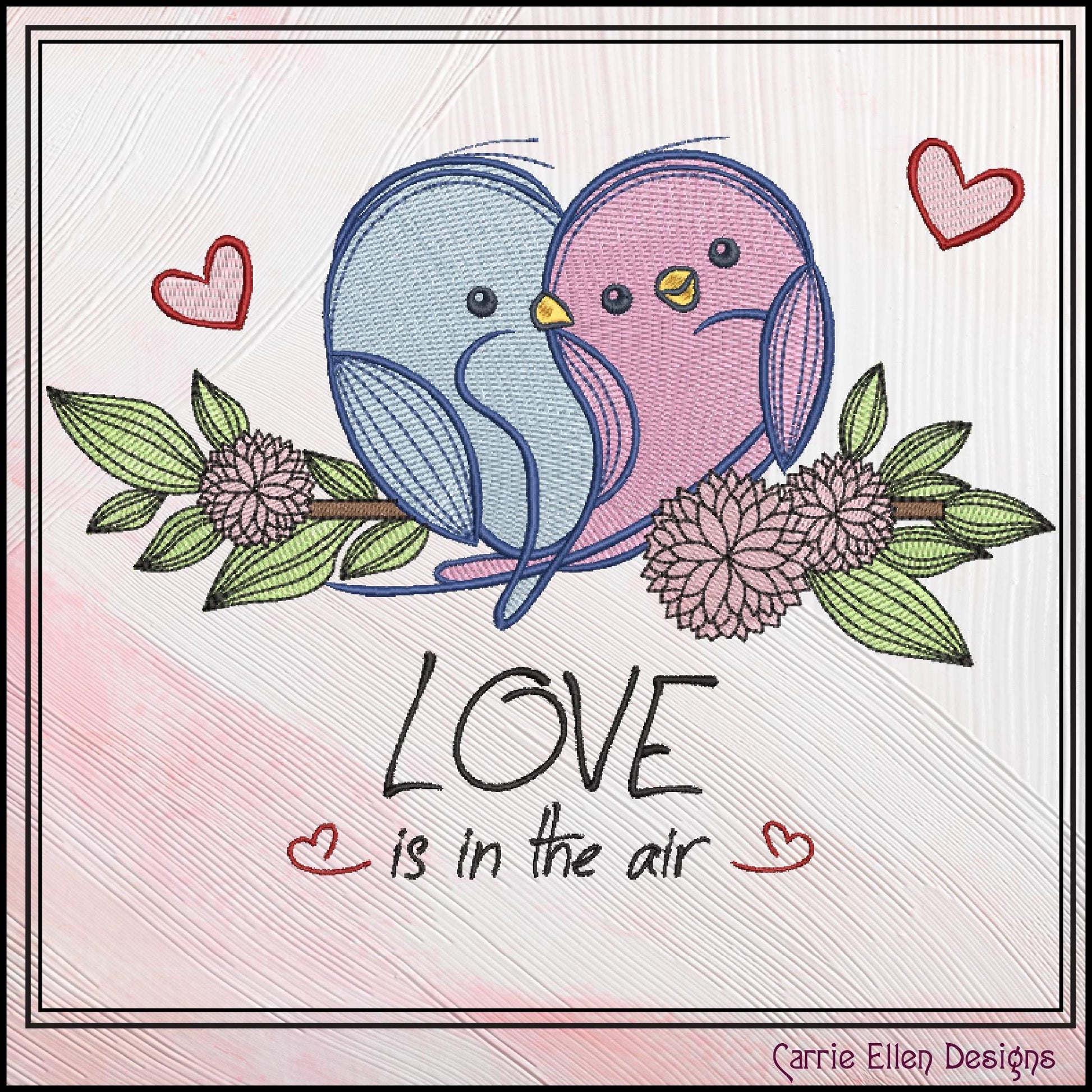 Love Bird Machine Embroidery Design – Valentine’s Day Holiday Pattern, Love Is in the Air Romantic Design, 6 Sizes (3135)