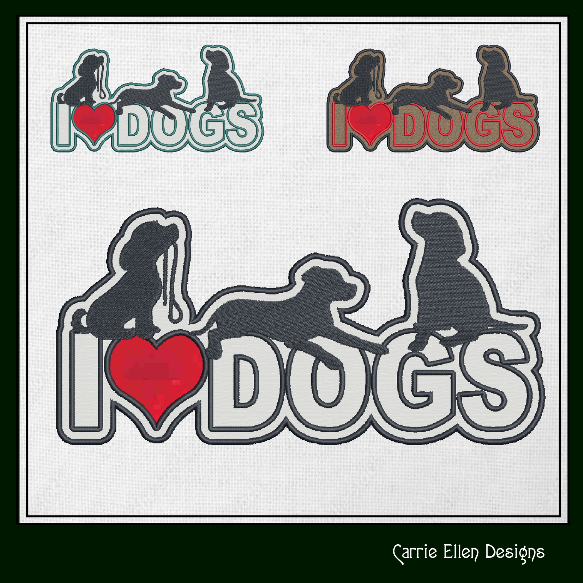 I Love Dogs Machine Embroidery Applique Design – I Heart Dogs Silhouette Pattern – 6 Sizes (1250)