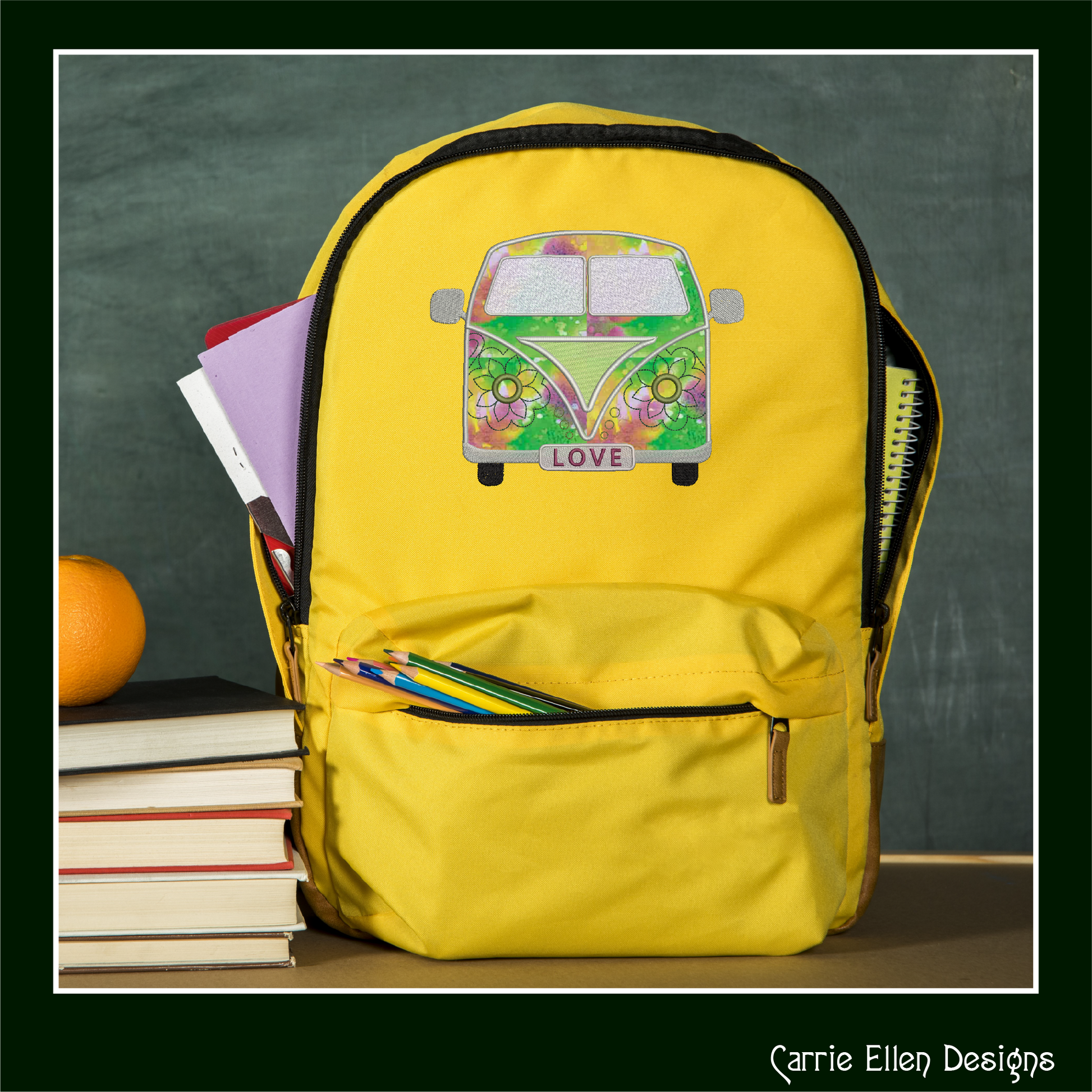 Love Bus Machine Embroidery Applique Design, VW Bus Hippie Retro Flower Power Groovy Themed Van, 6 Sizes (2741)