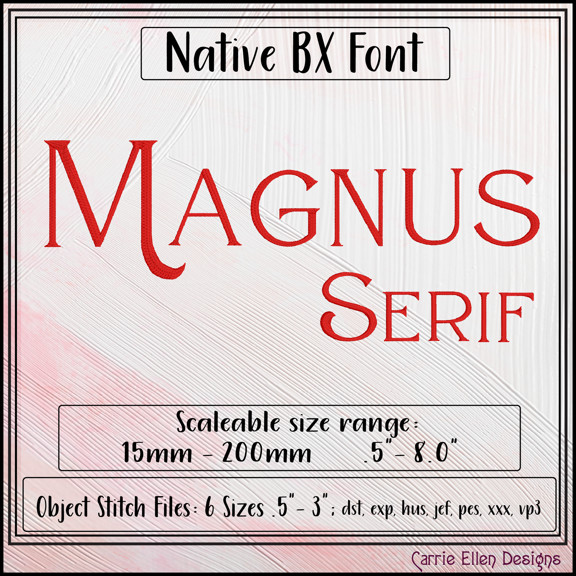 Magnus BX Fonts and Lettering Stitch Files, Classic Serif Block Alphabet Machine Embroidery (3705)