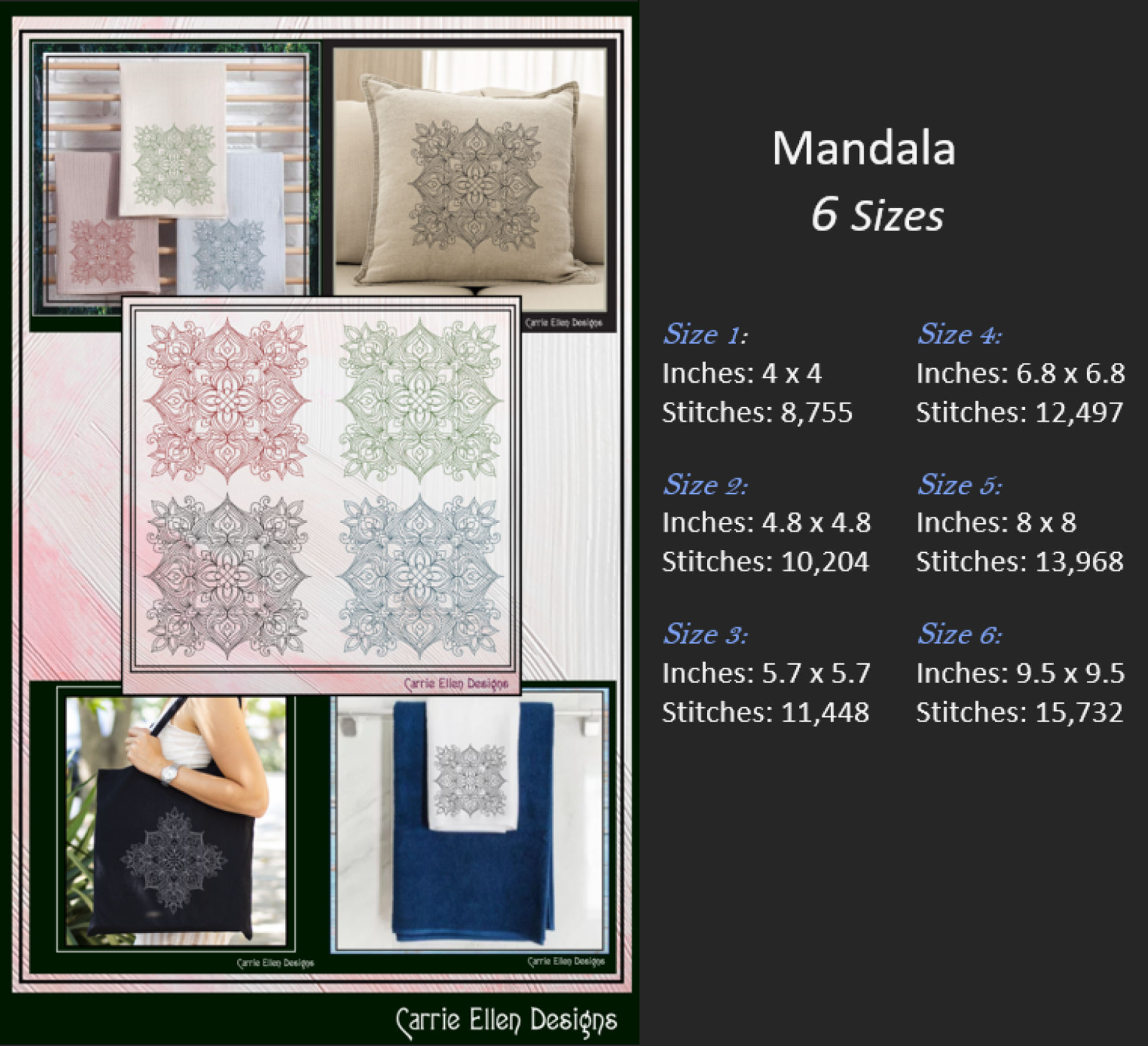 Mandala Machine Embroidery Design, Lace Embroidery, Mandala Flower, Floral Line Art, Spiritual Embroidery Design, 6 Sizes (3267)