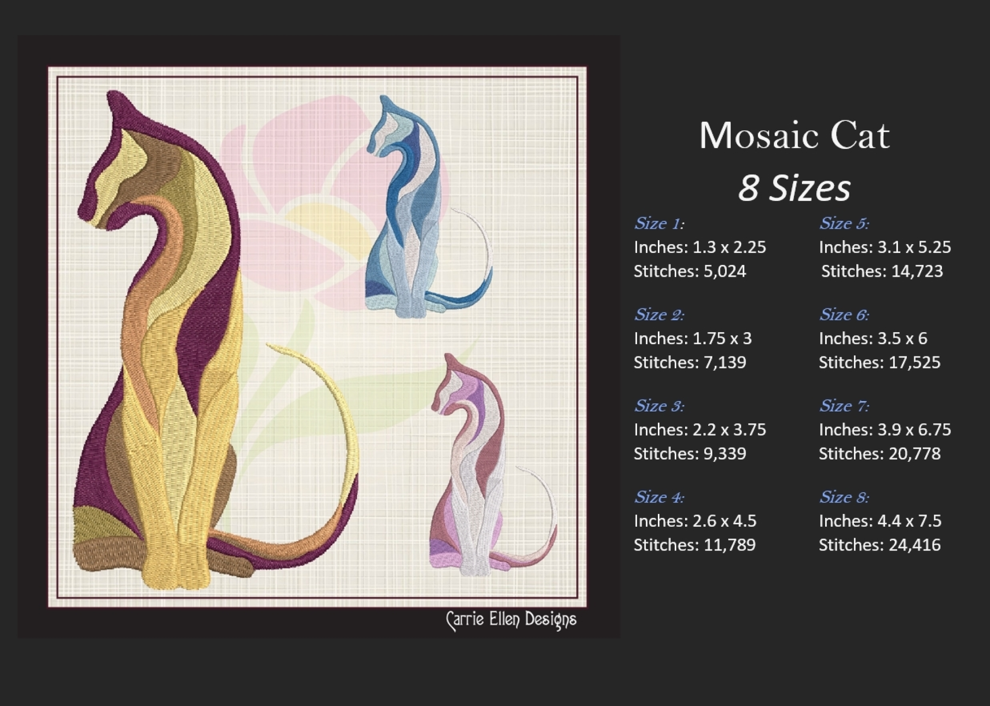 Colored Mosaic Cat Machine Embroidery Design – Artistic Cat Lover Gift Pattern, 8 Sizes (1057)