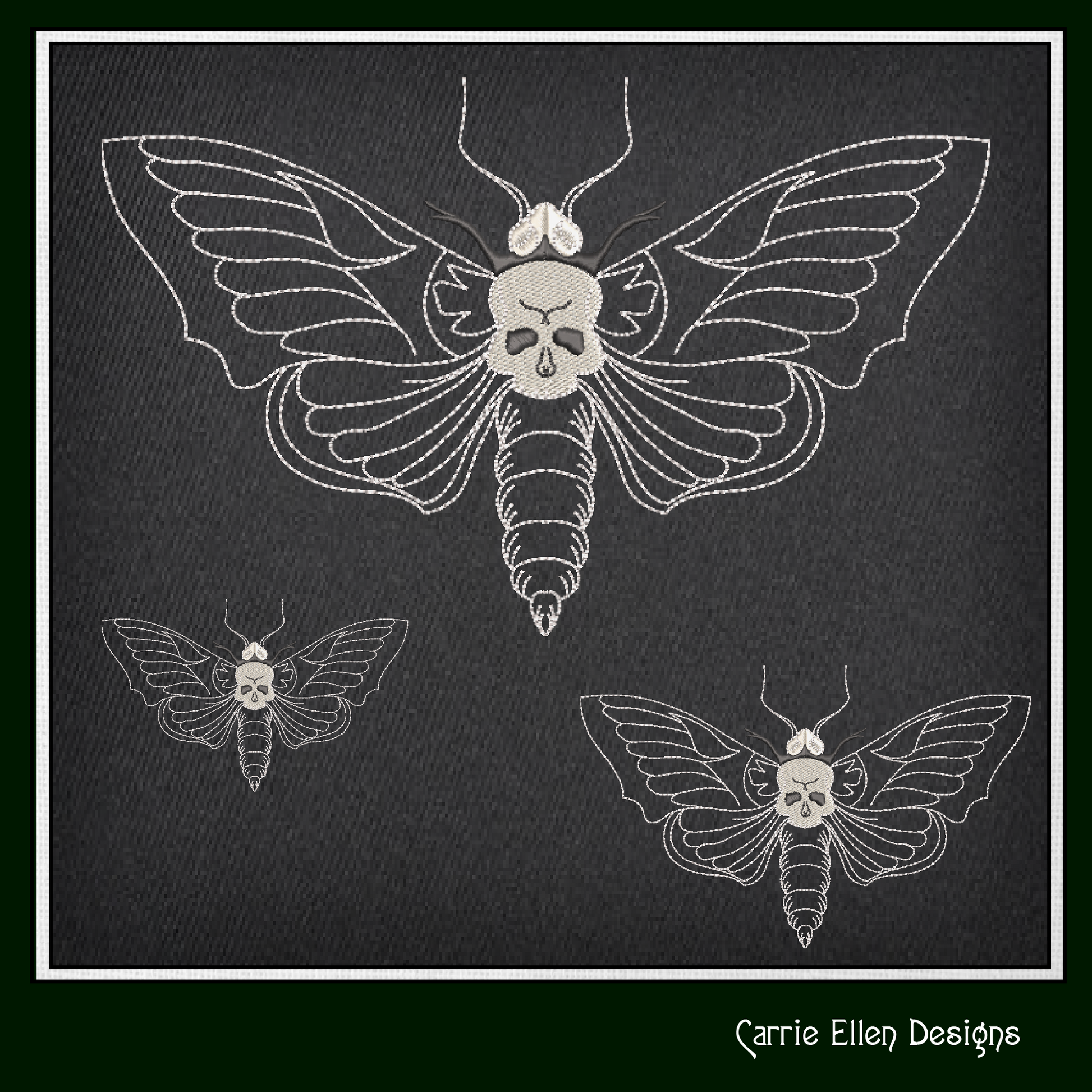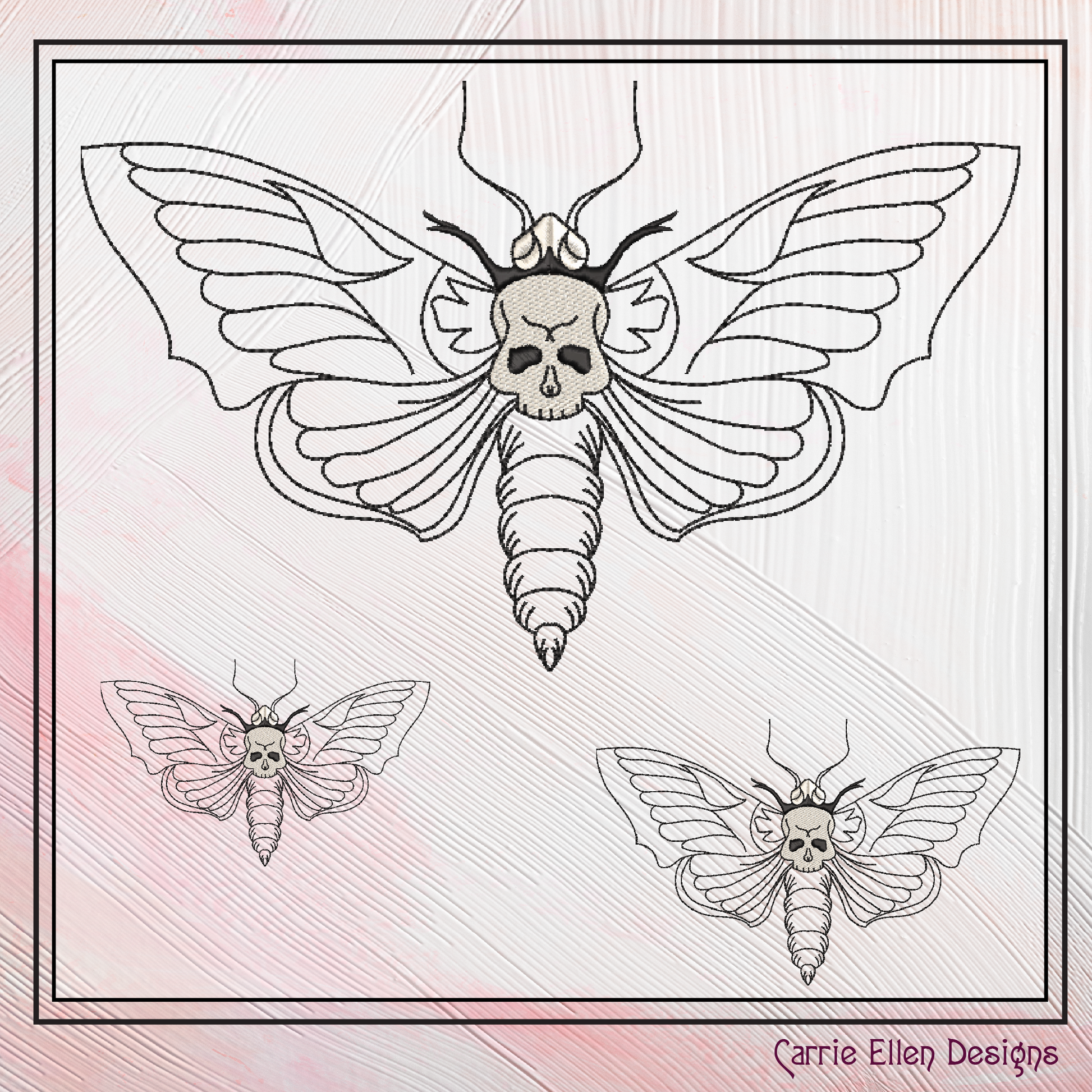 Bring a touch of dark beauty to your next project with this Death Moth Machine Embroidery Design. Featuring the striking imagery of a moth with skull-inspired details, this gothic-inspired pattern is perfect for alternative fashion, accessories, and home décor.